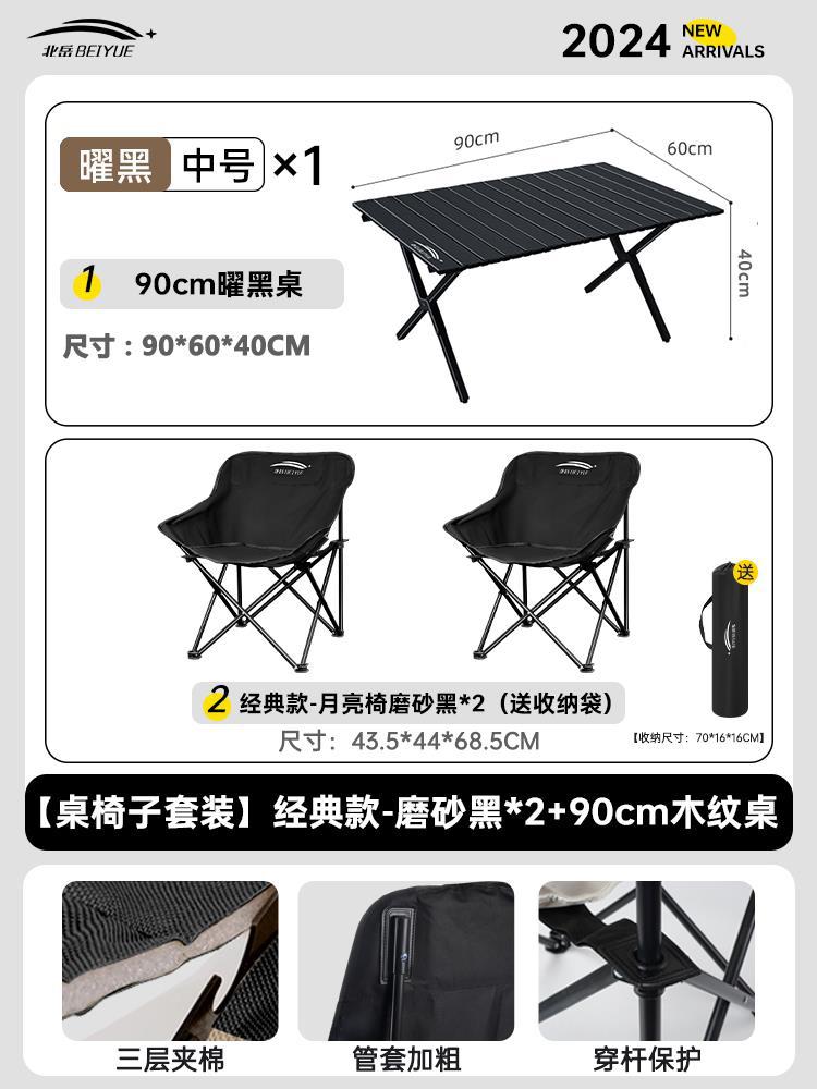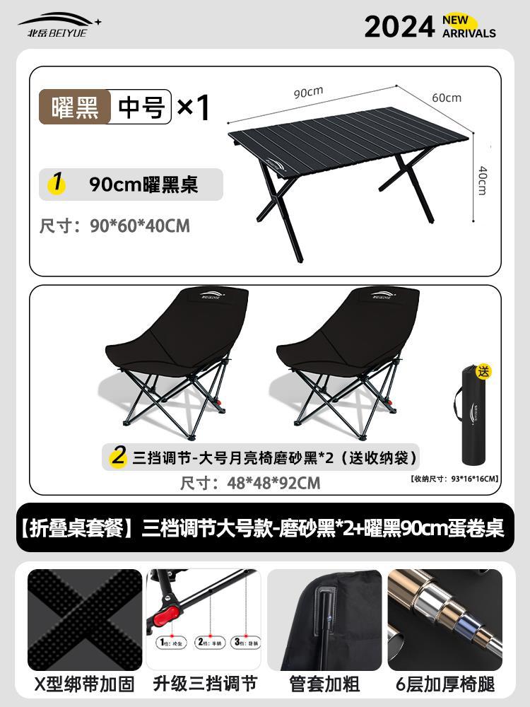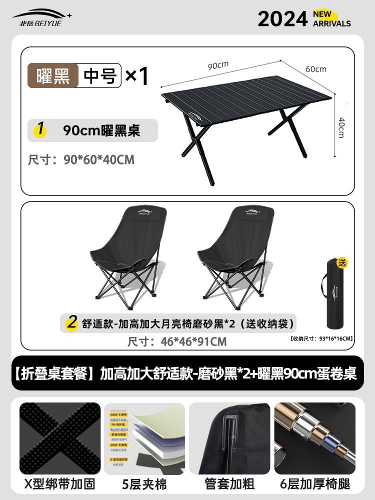 • [접이식 테이블 패키지] 클래식 스타일 - 매트 블랙*2 + 옵시디언 블랙 90cm 에그롤 테이블