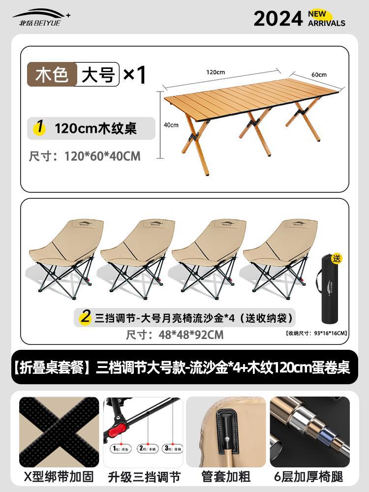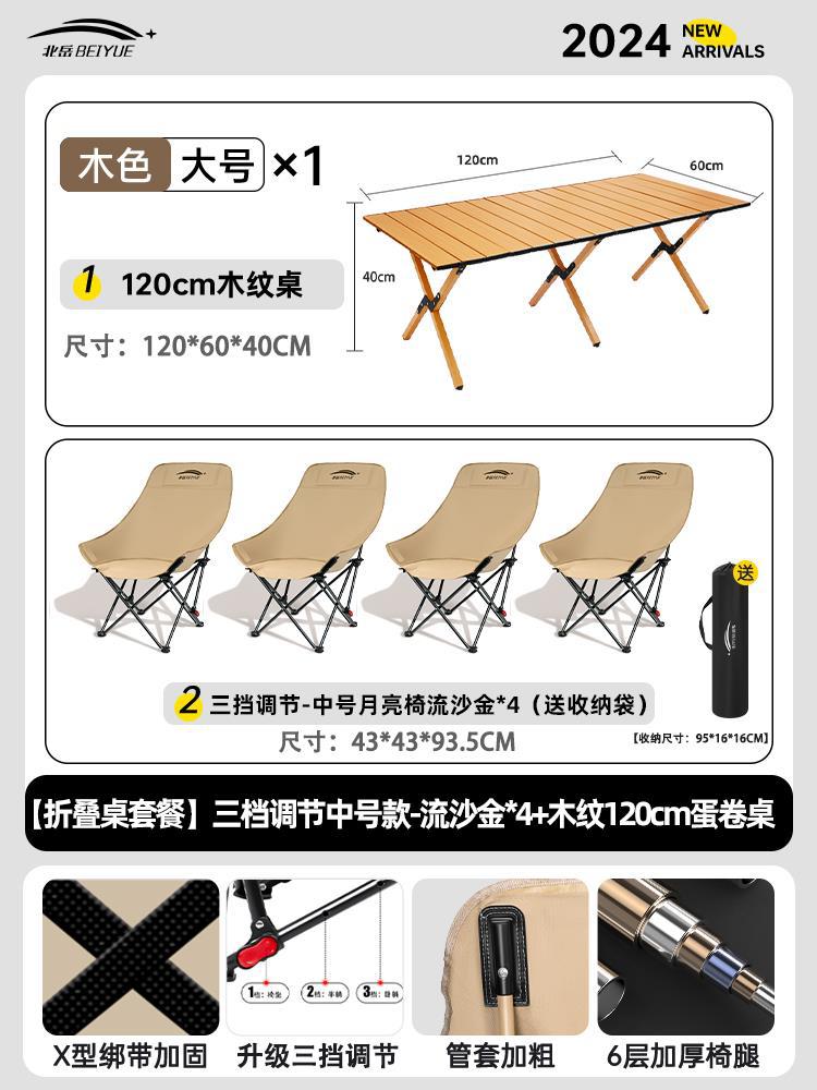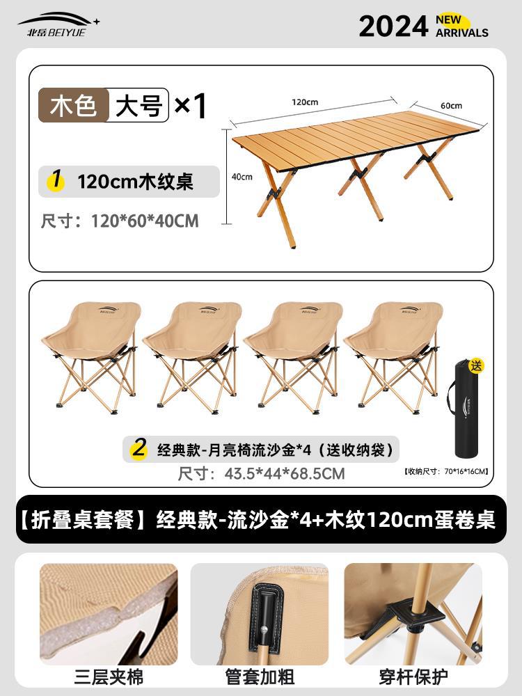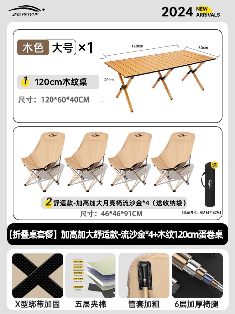 • [접이식 테이블 패키지] 더욱 크고 편안한 모델 - 퀵샌드 골드*4+우드그레인 120cm 에그롤 테이블