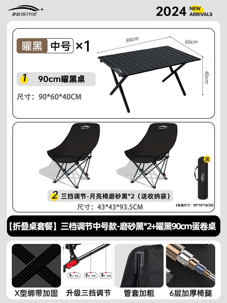 • [접이식 테이블 패키지] 3단 조절 가능한 대형 모델 - 매트 블랙*2 + 옵시디언 블랙 90cm 에그롤 테이블