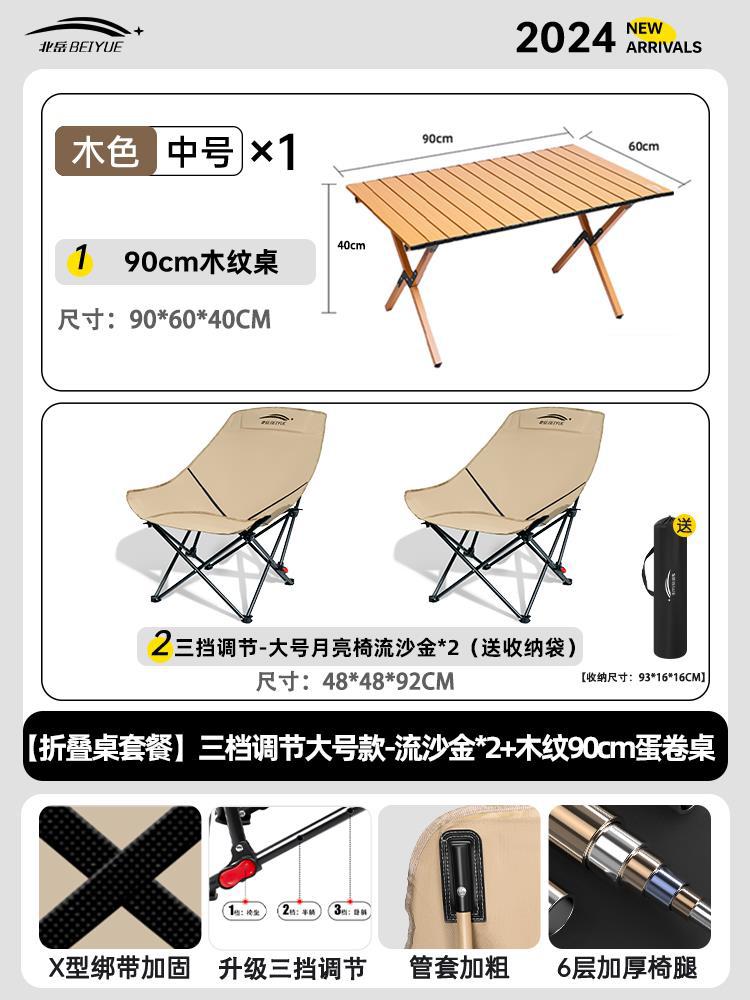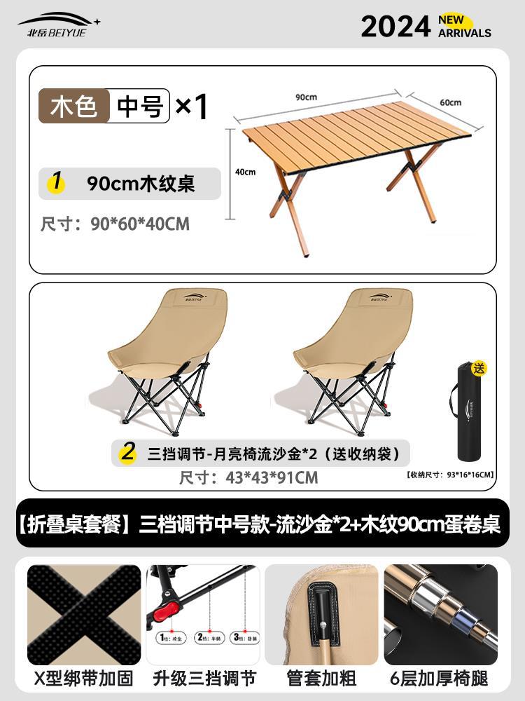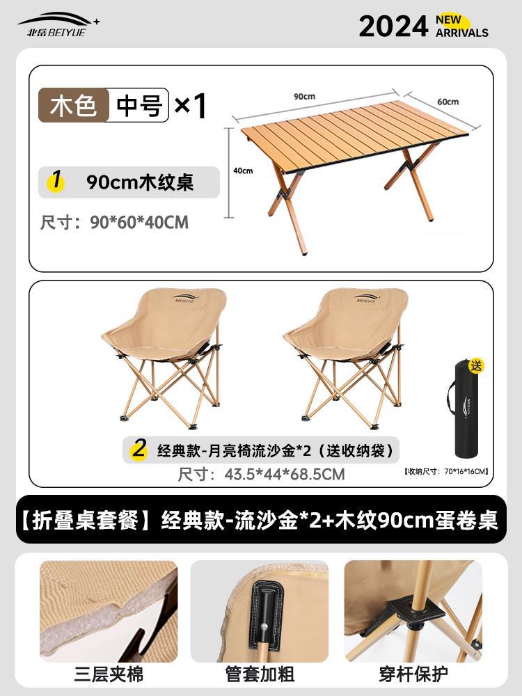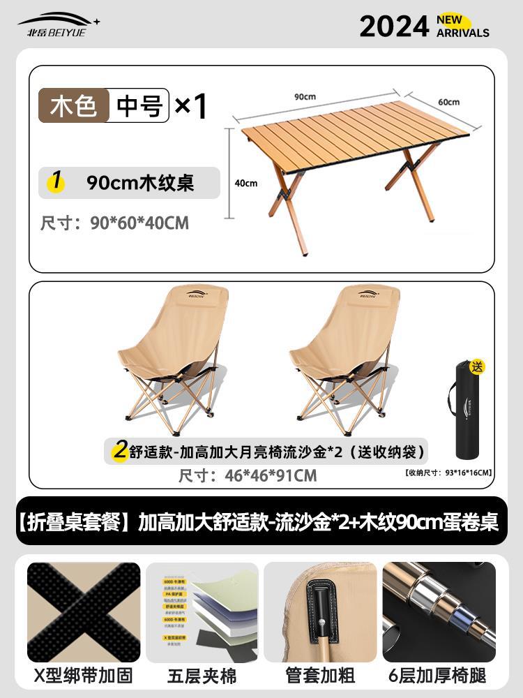 • [접이식 테이블 패키지] 더욱 크고 편안한 모델 - 퀵샌드 골드*2+우드그레인 90cm 에그롤 테이블