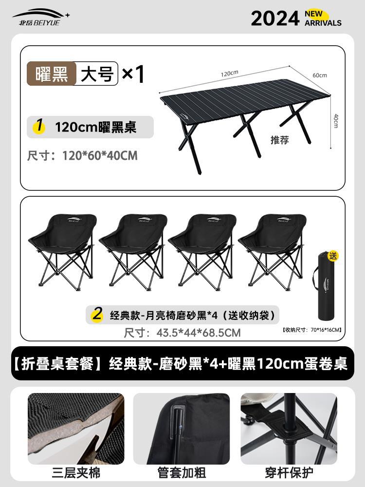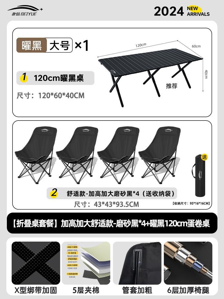 • [접이식 테이블 패키지] 더욱 크고 편안한 모델 - 매트 블랙*4 + 옵시디언 블랙 120cm 에그롤 테이블