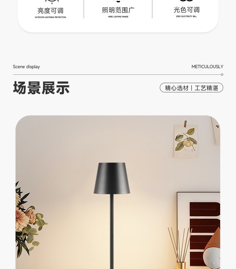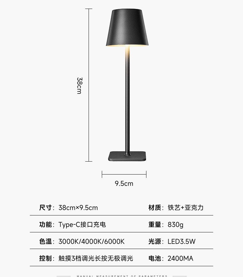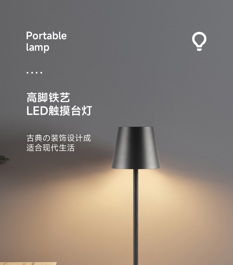 LED 충전식 테이블 램프 터치 바 레스토랑 알루미늄 램프 아마존 야간등 침대 옆 조명 조광 가능