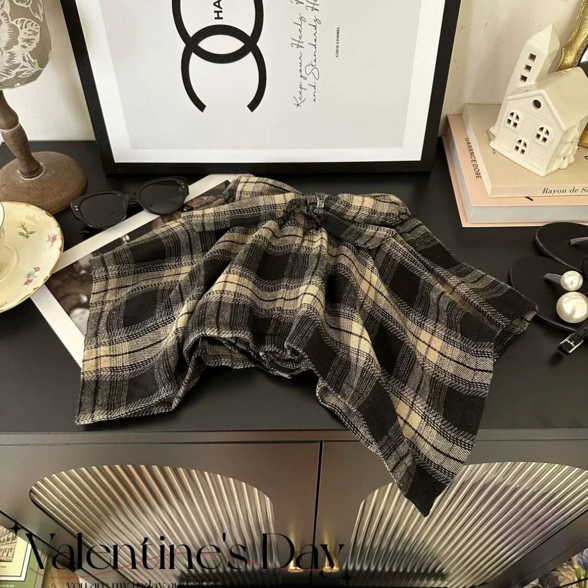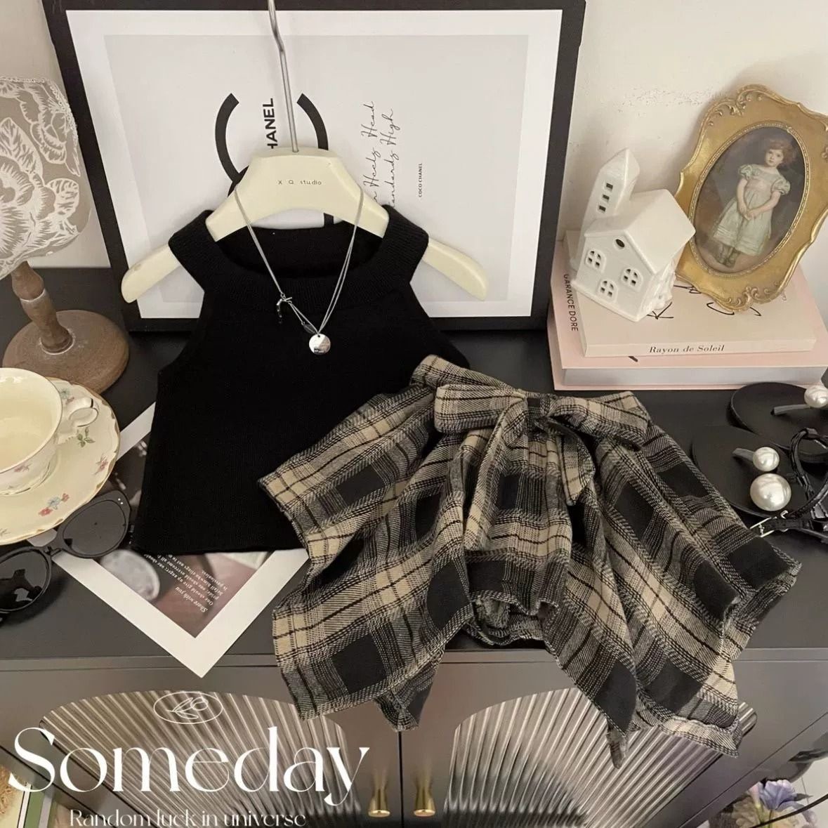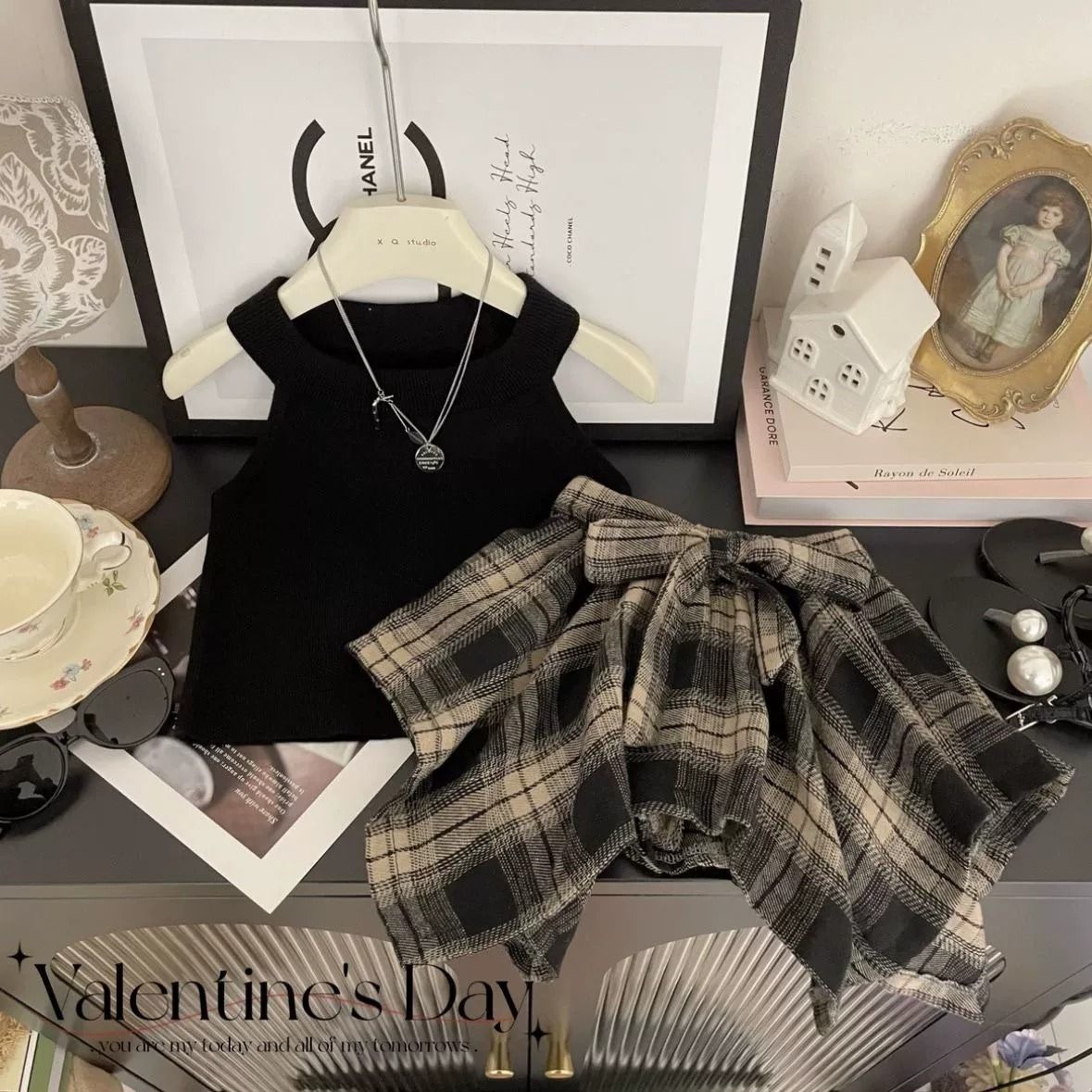 여름 소녀 세트 아기 서양식 어린이 성격 유행 인터넷 인기있는 유행 한국 조끼 카미솔 격자 무늬 짧은 문화