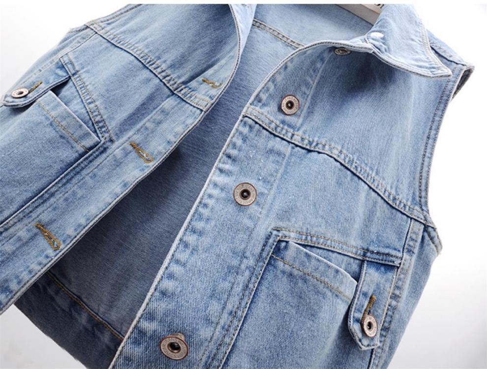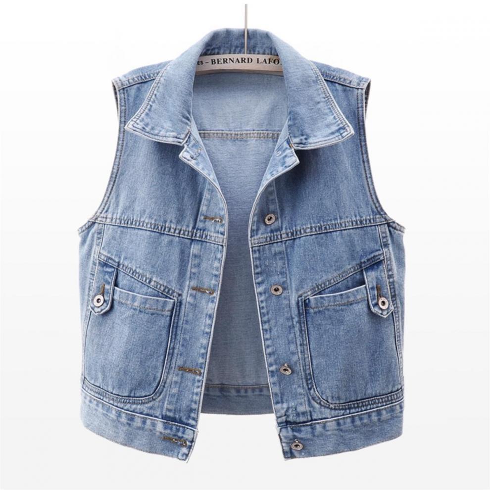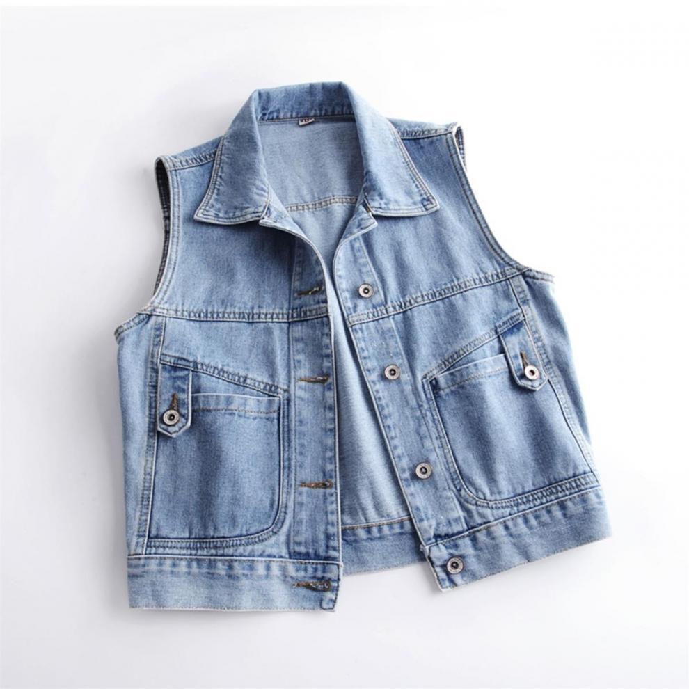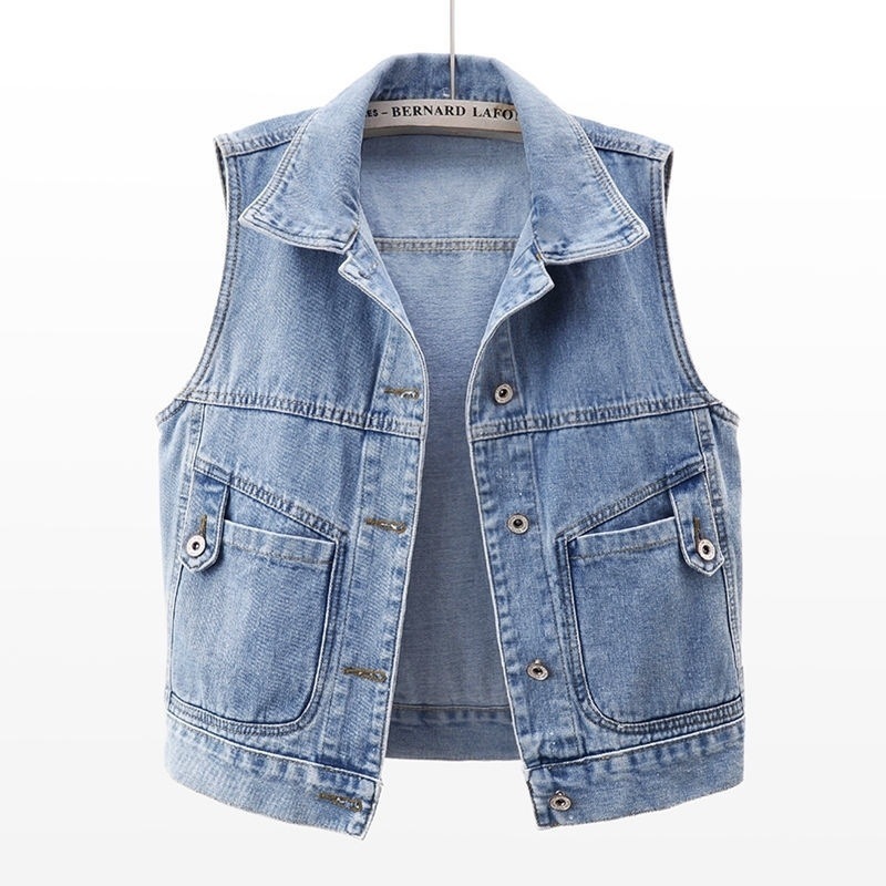 2024 봄과 가을 다양한 패션 버튼 데님 조끼 여성의 짧은 민소매 조끼 어깨 외부 학생 탑스토어 가기