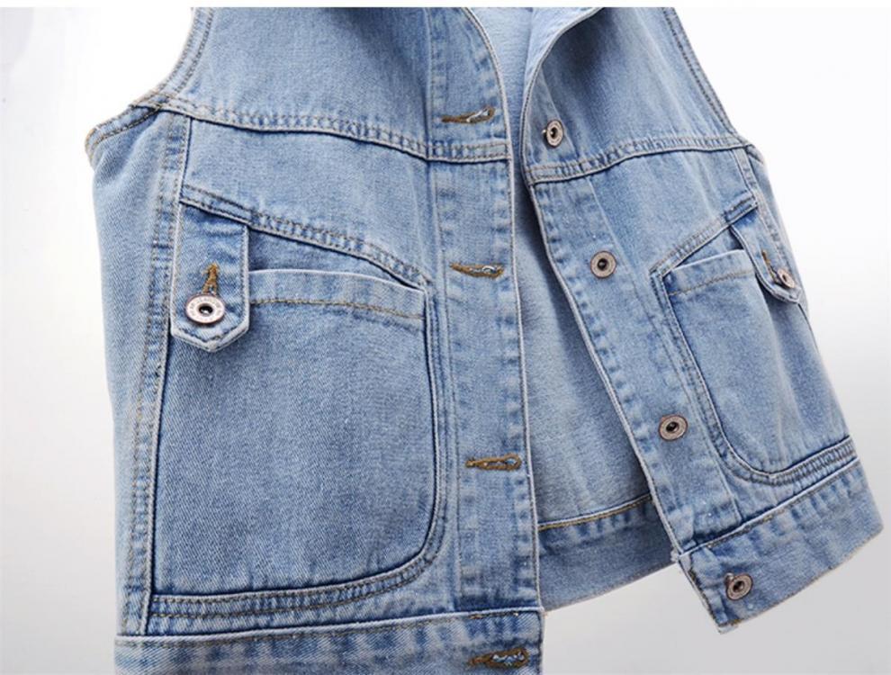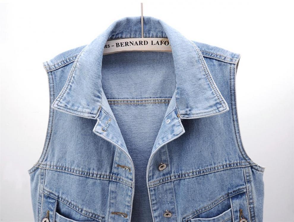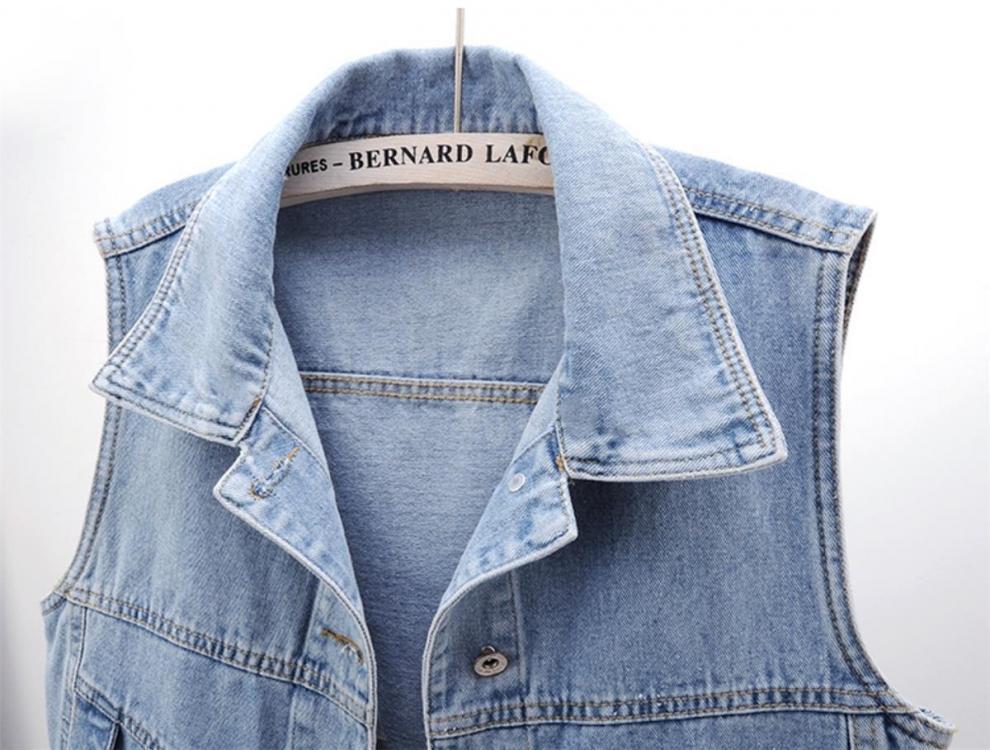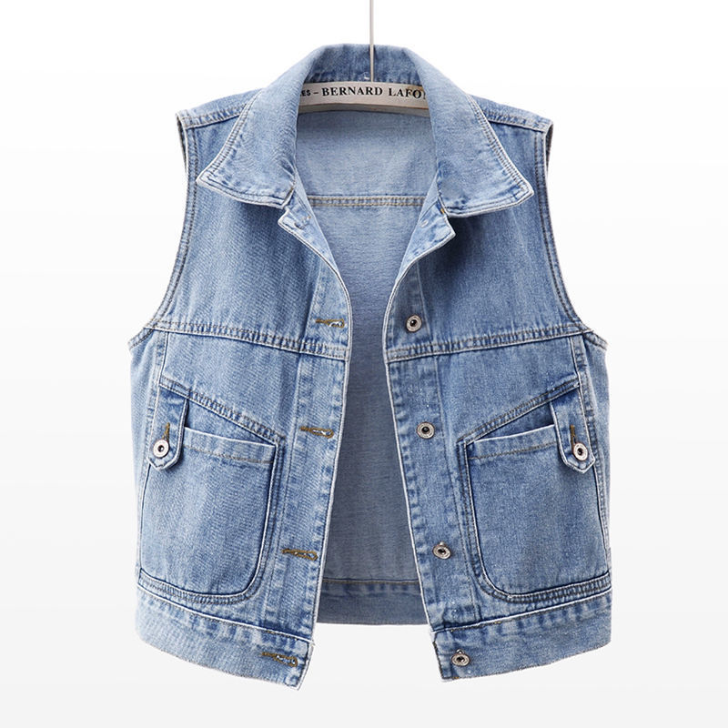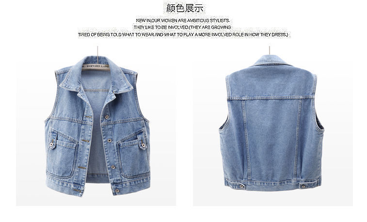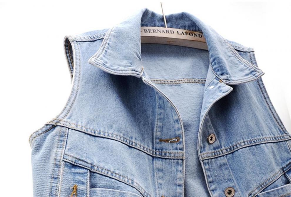 2024 봄과 가을 다양한 패션 버튼 데님 조끼 여성의 짧은 민소매 조끼 어깨 외부 학생 탑스토어 가기