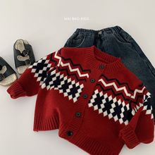 麦宝儿童卡通针织开衫2025冬季新款男女童红色洋气毛衣男孩冬装潮