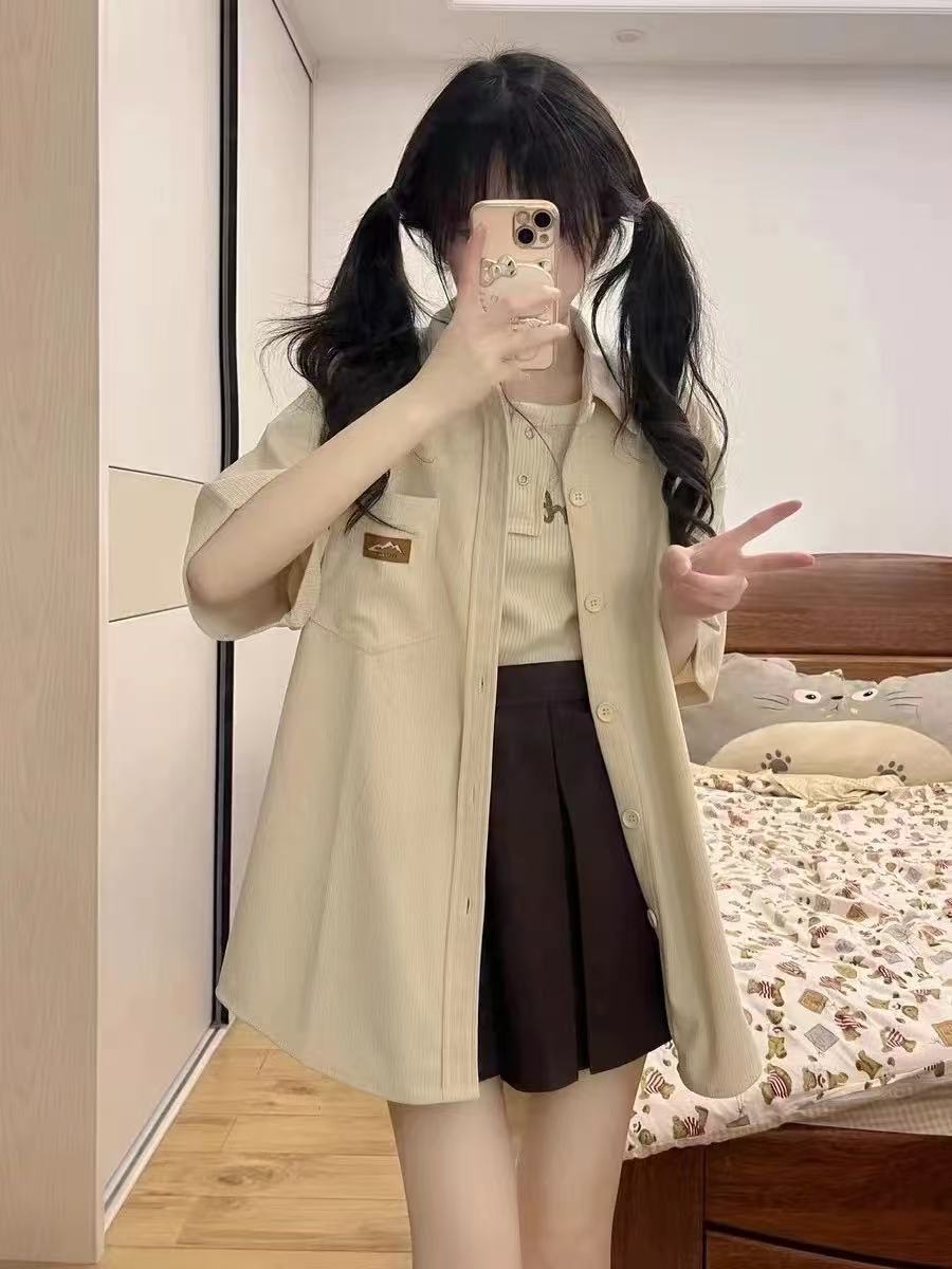 일본 청소년 짧은 셔츠 여성 학생 2025 여름 느슨한 올매치 셔츠 얇은 코트 프록 패션스토어 가기