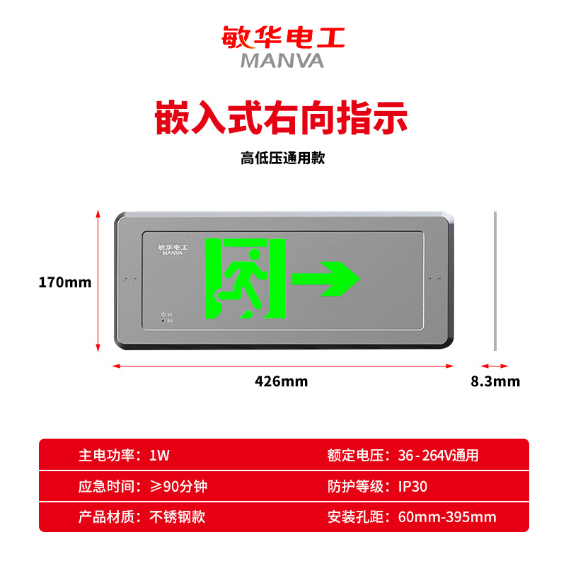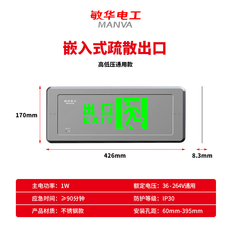 민화 비상등 높고 저전압 범용 임베디드 대피 표시등 안전 출구 표지등 내장 벽 비상등