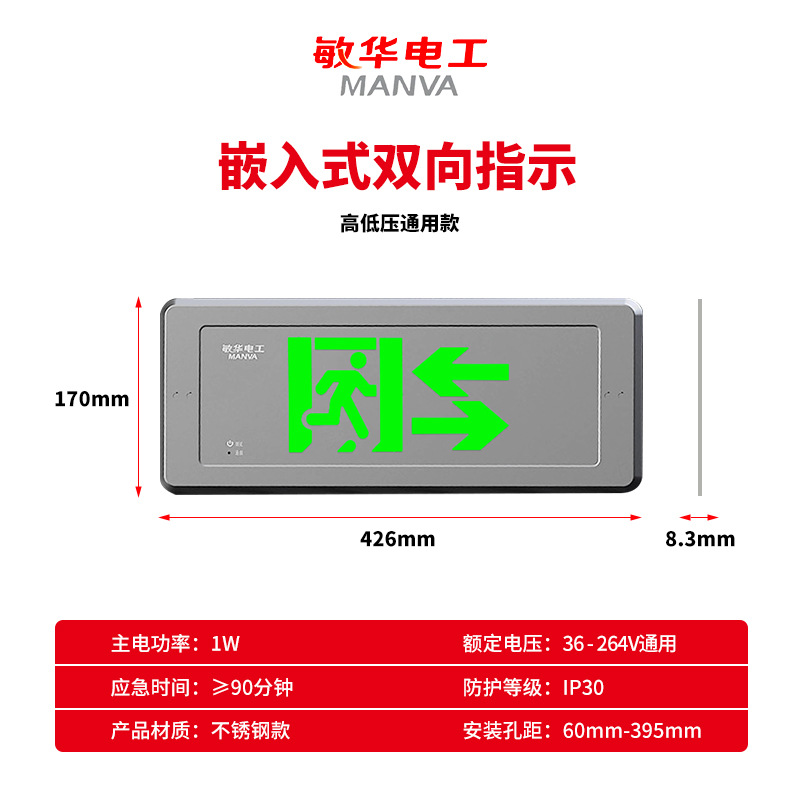 민화 비상등 높고 저전압 범용 임베디드 대피 표시등 안전 출구 표지등 내장 벽 비상등스토어 가기