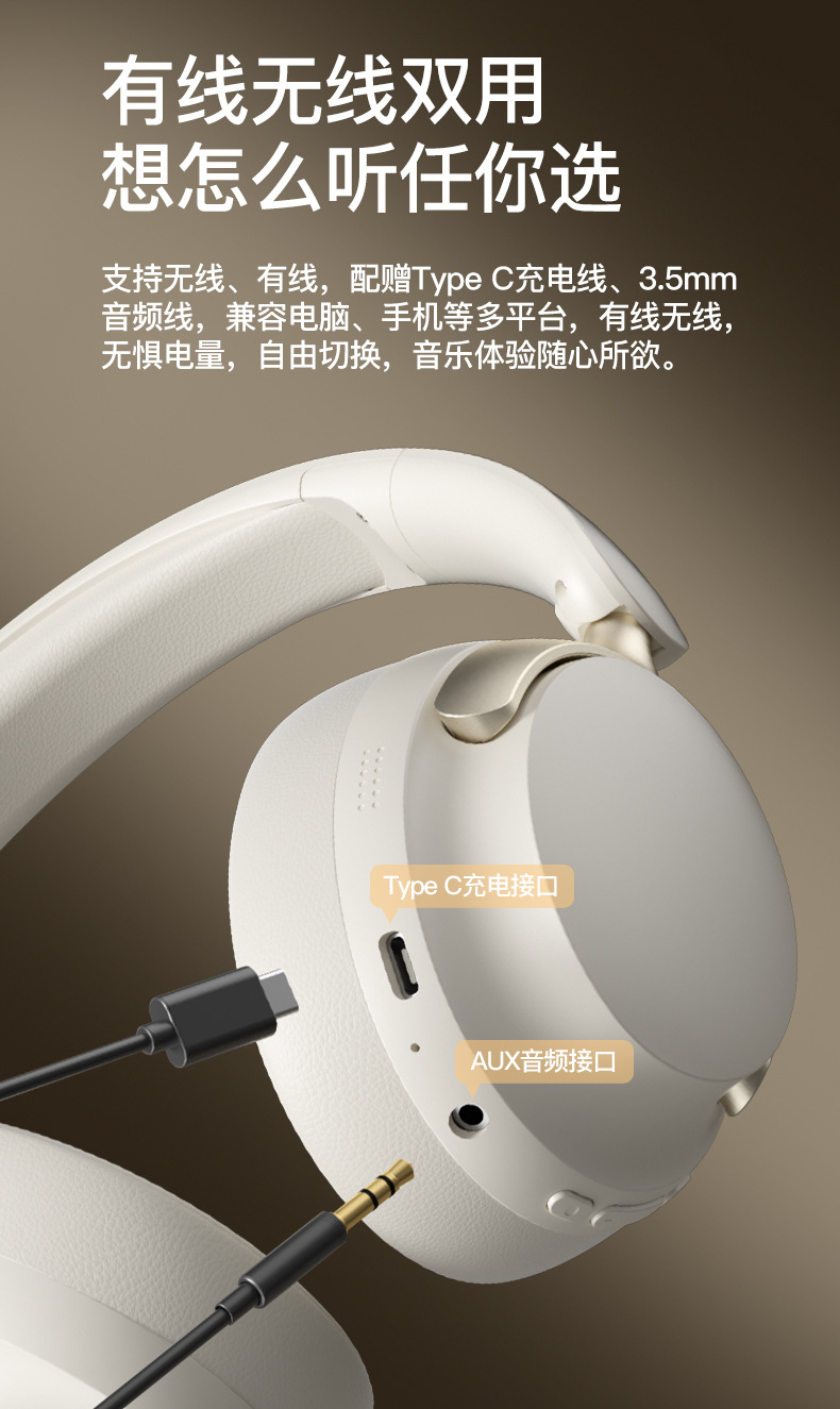 内含:Type-C充电线,AUX音频线,说明书,吸塑,彩盒