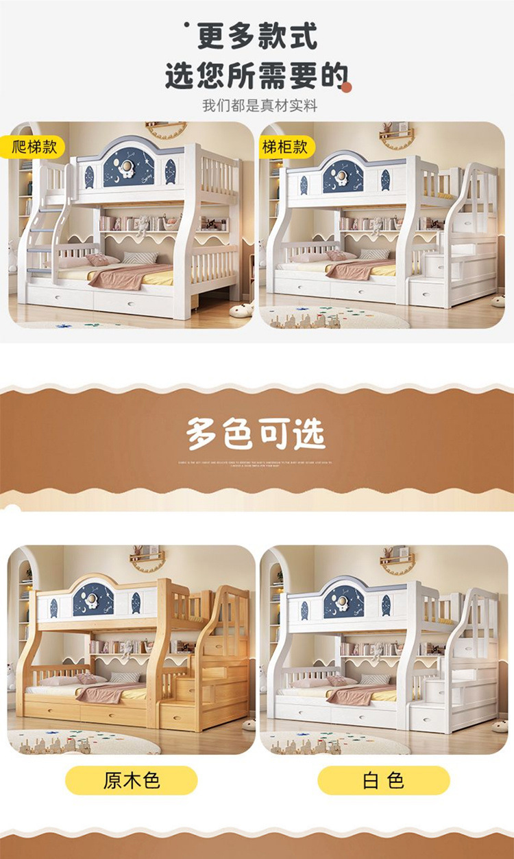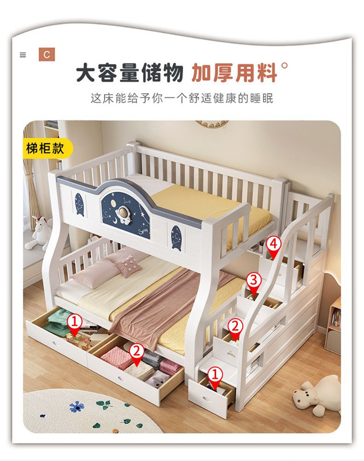 • -상단 침대 너비는 160cm, 하단은 180cm입니다. (순수한 원목으로 제작)
