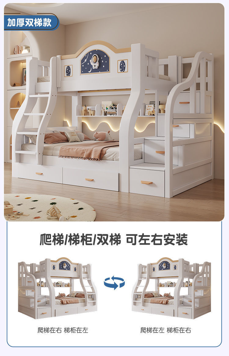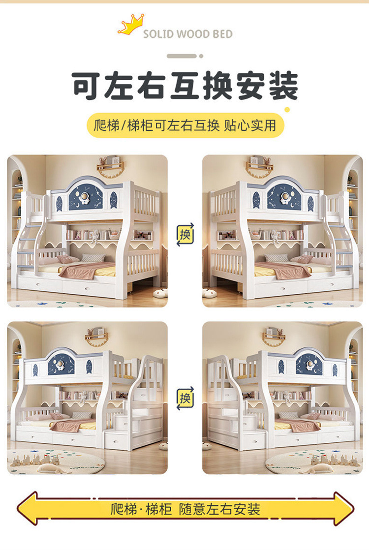솔리드 우드 벙크 침대 이층 어린이 침대 2 층 다기능 높고 낮은 어머니 침대 아파트 작은 더블 침대