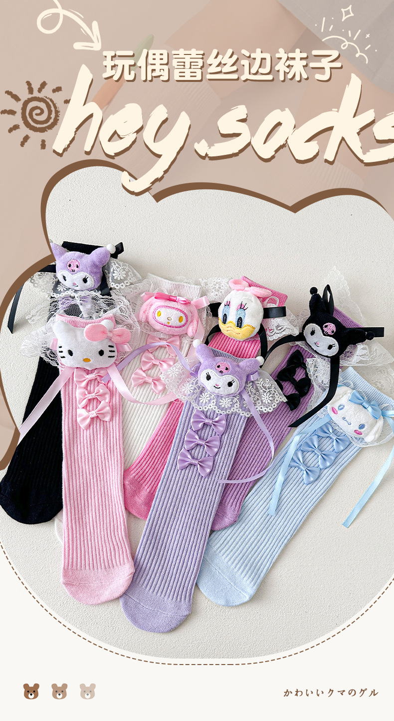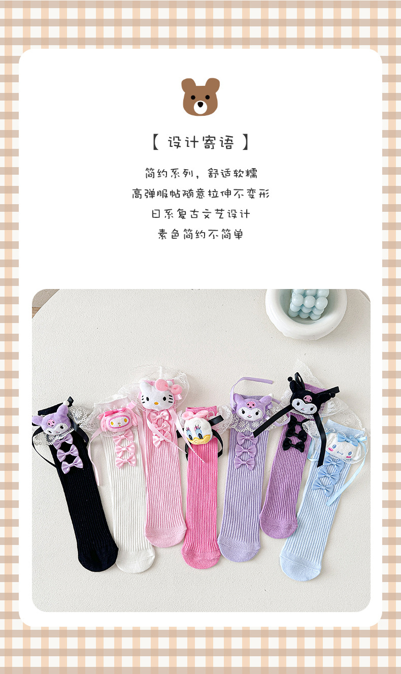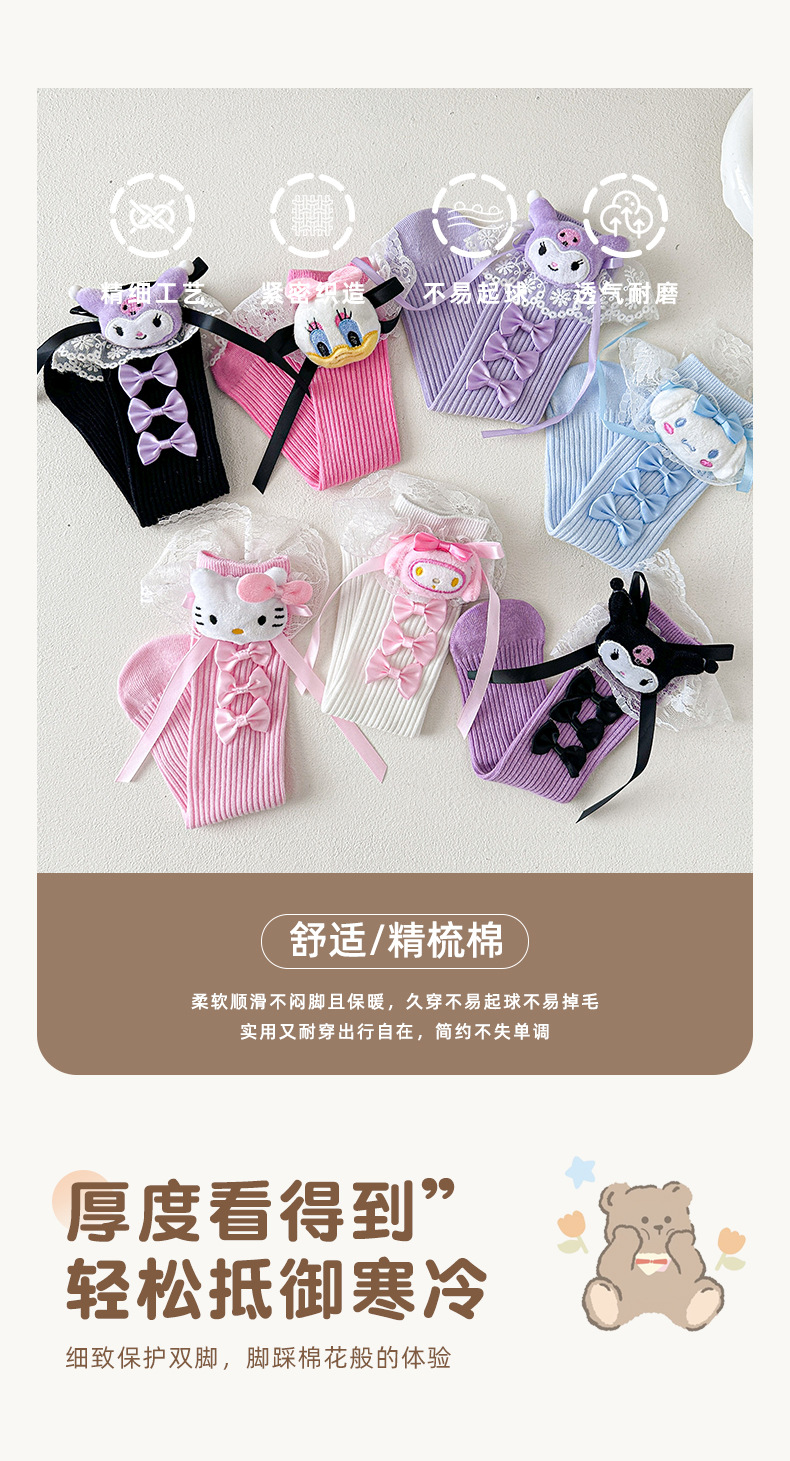 새로운 봄 패션 슈퍼 귀여운 니트 중간 길이 면 양말 만화 캐릭터 어린이 양말 트렌디 쿠로미 인형 어린이 양말