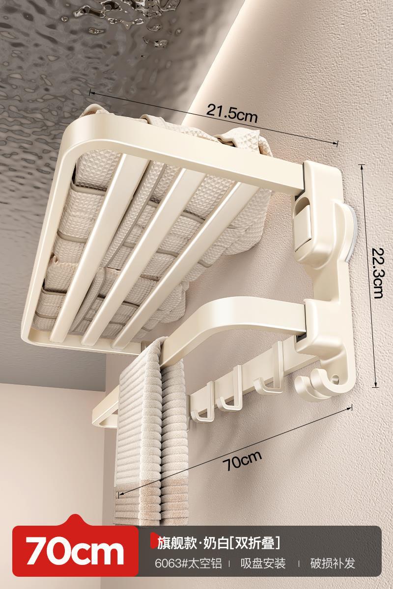 • [밀크화이트/스페이스 알루미늄] ❤ 60cm 흡착컵 접이식 수건걸이 ❤ 인기 메인 사진 [초만에 설치/강력한 내하중]