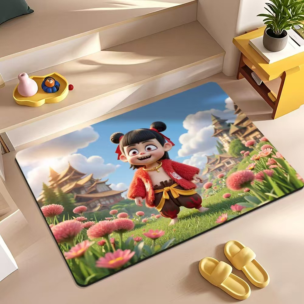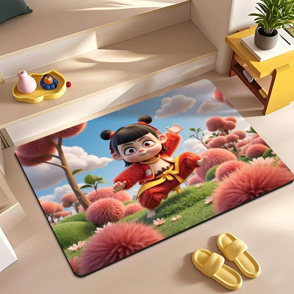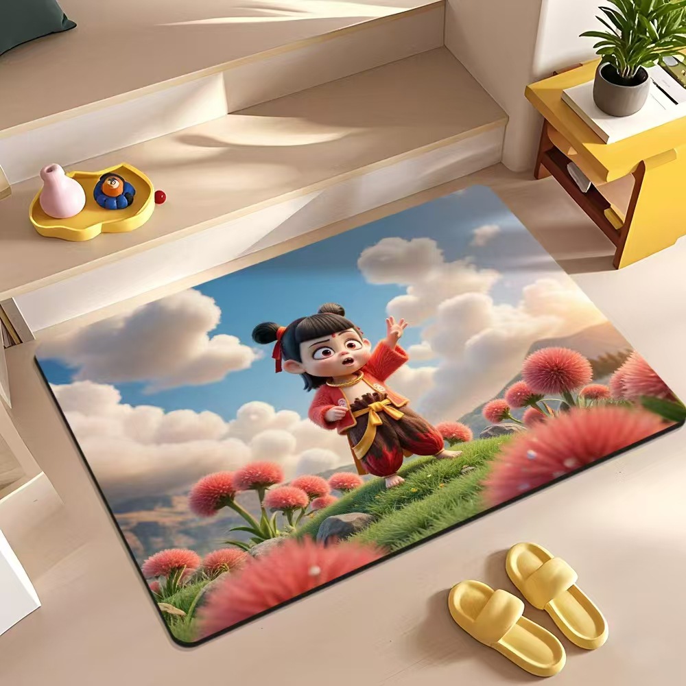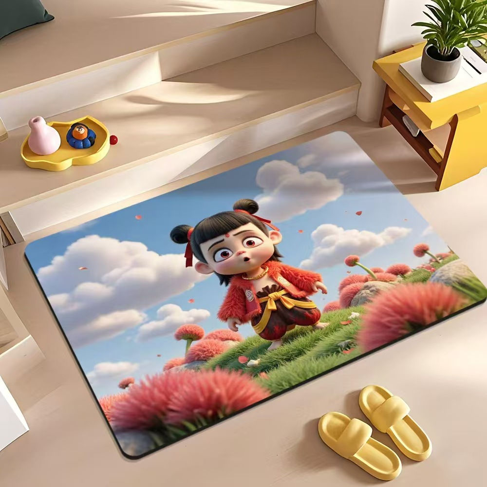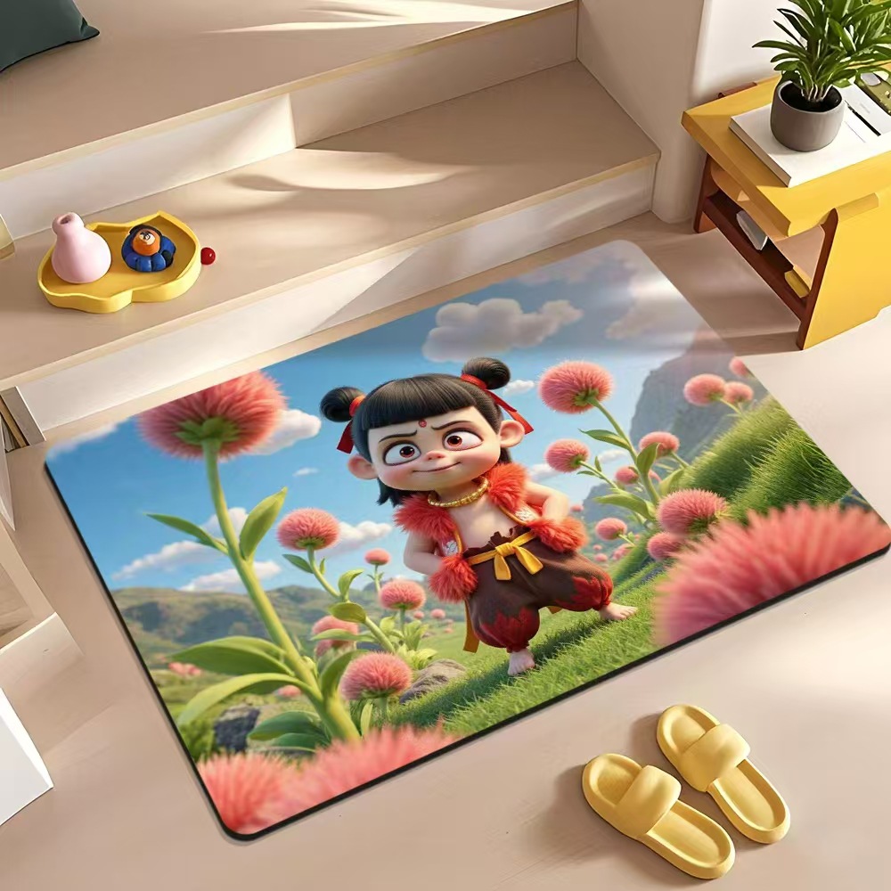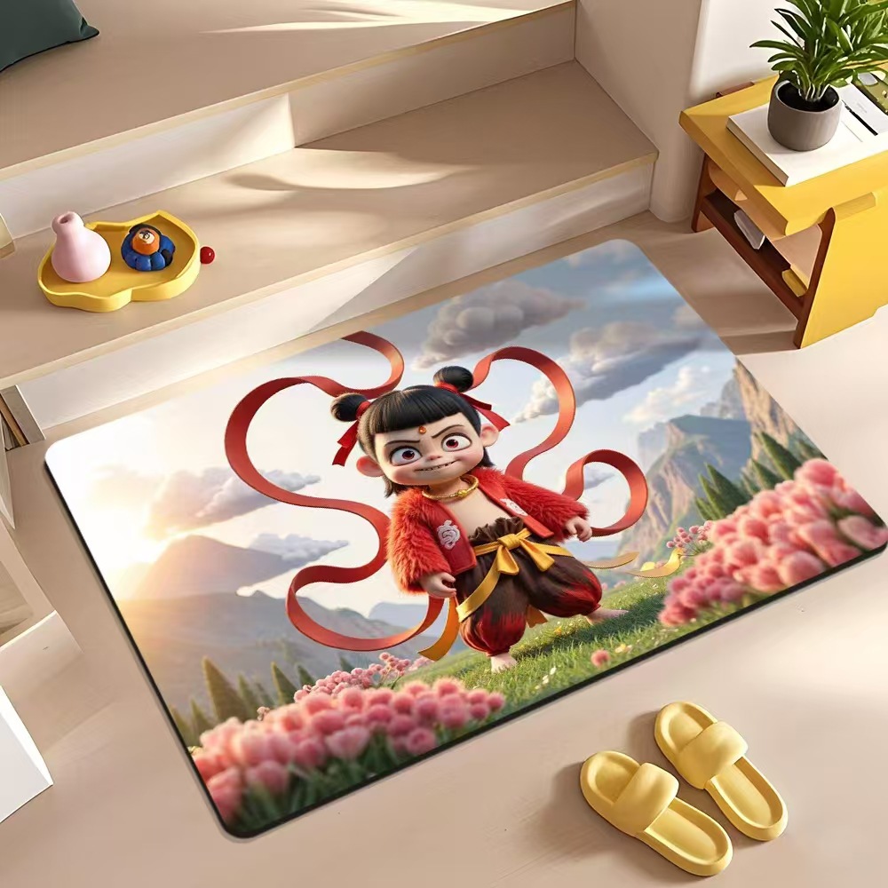 硅藻泥地垫卡通哪吒入户门门垫客厅卧室浴室蹭土刮沙吸水耐脏地垫