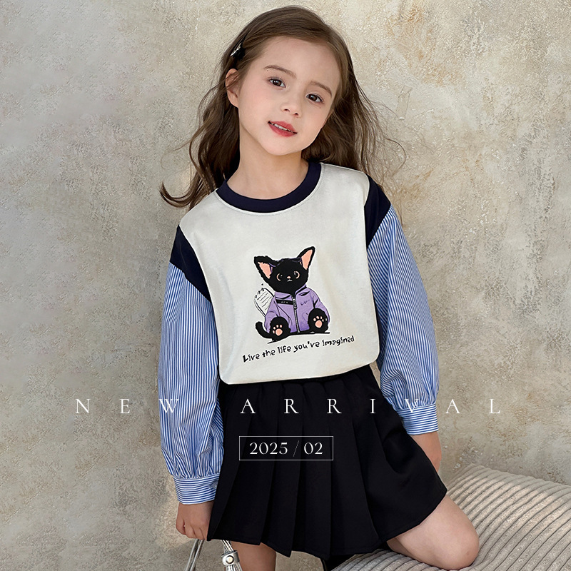 틱톡 인기 여아 배색 티셔츠 2026 봄 신상 상의 아동용 패치워크 긴팔 셔츠 부모-자녀룩스토어 가기