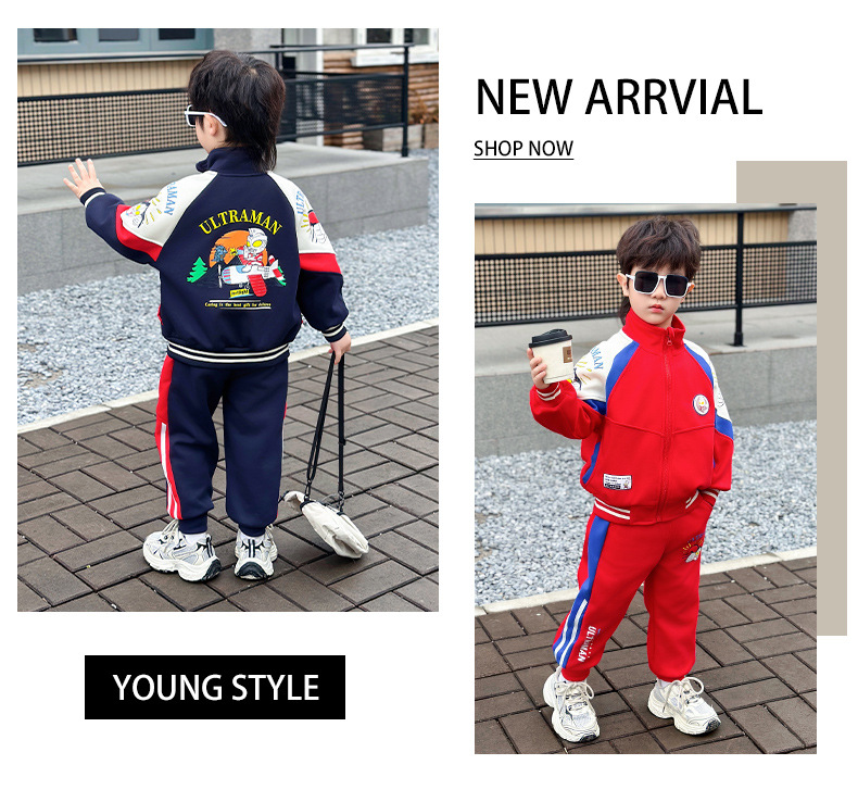 Altman Boys 의류 세트 2025 뉴 보이즈 야구 세트 프라이드 스트리트 투피스 어린이 봄 운동복