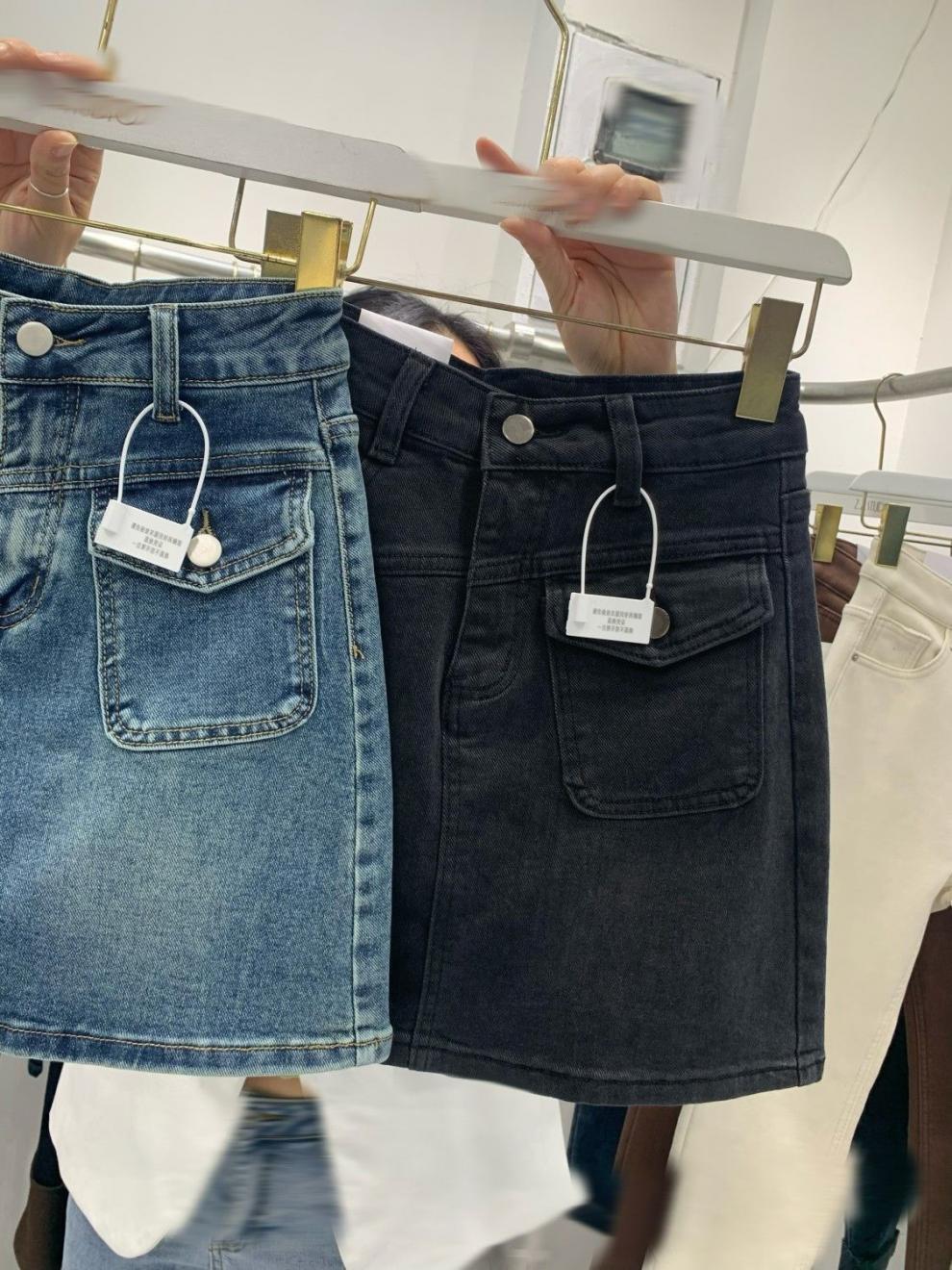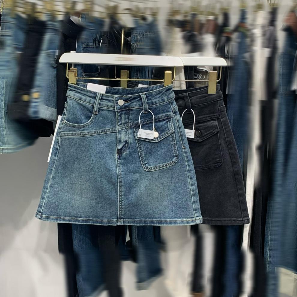 높은 허리 레트로 데님 스커트 여성 여름 2024 새로운 유럽 디자인 센스 슬리밍 엉덩이 하프 길이 스커트스토어 가기