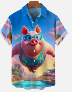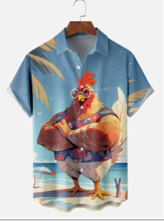 25 국경 간 유럽과 미국의 새로운 하와이안 셔츠 디지털 인쇄 반팔 셔츠 여름 해변 남성 캐주얼 셔츠