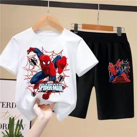 어린이 여름 원피스 승무원 목 스파이더 맨 소년 스포츠 세트 세트 반팔 티셔츠 어린이 서양식 반바지 얇은스토어 가기