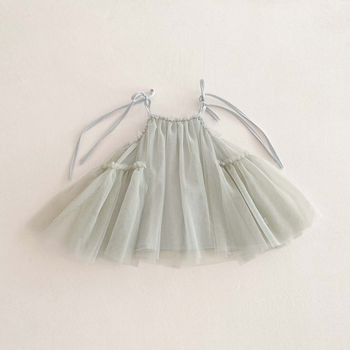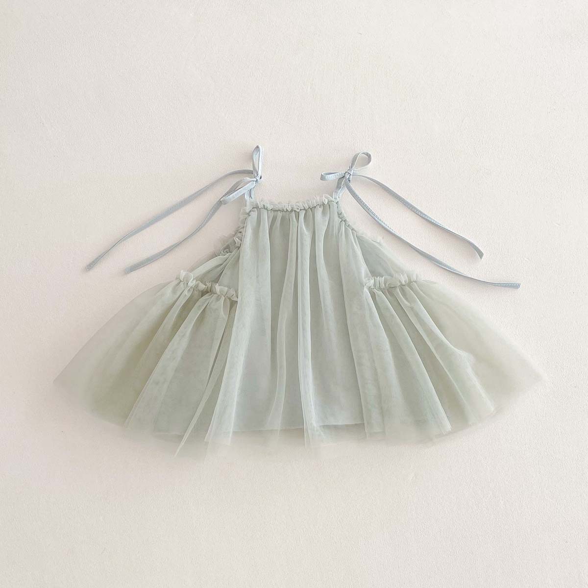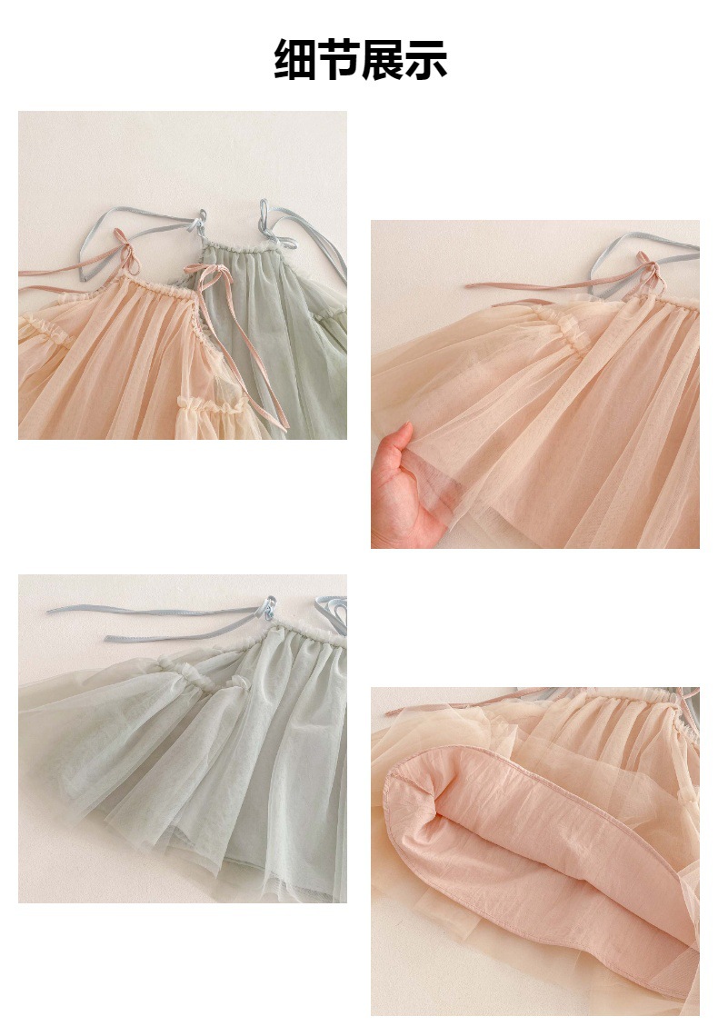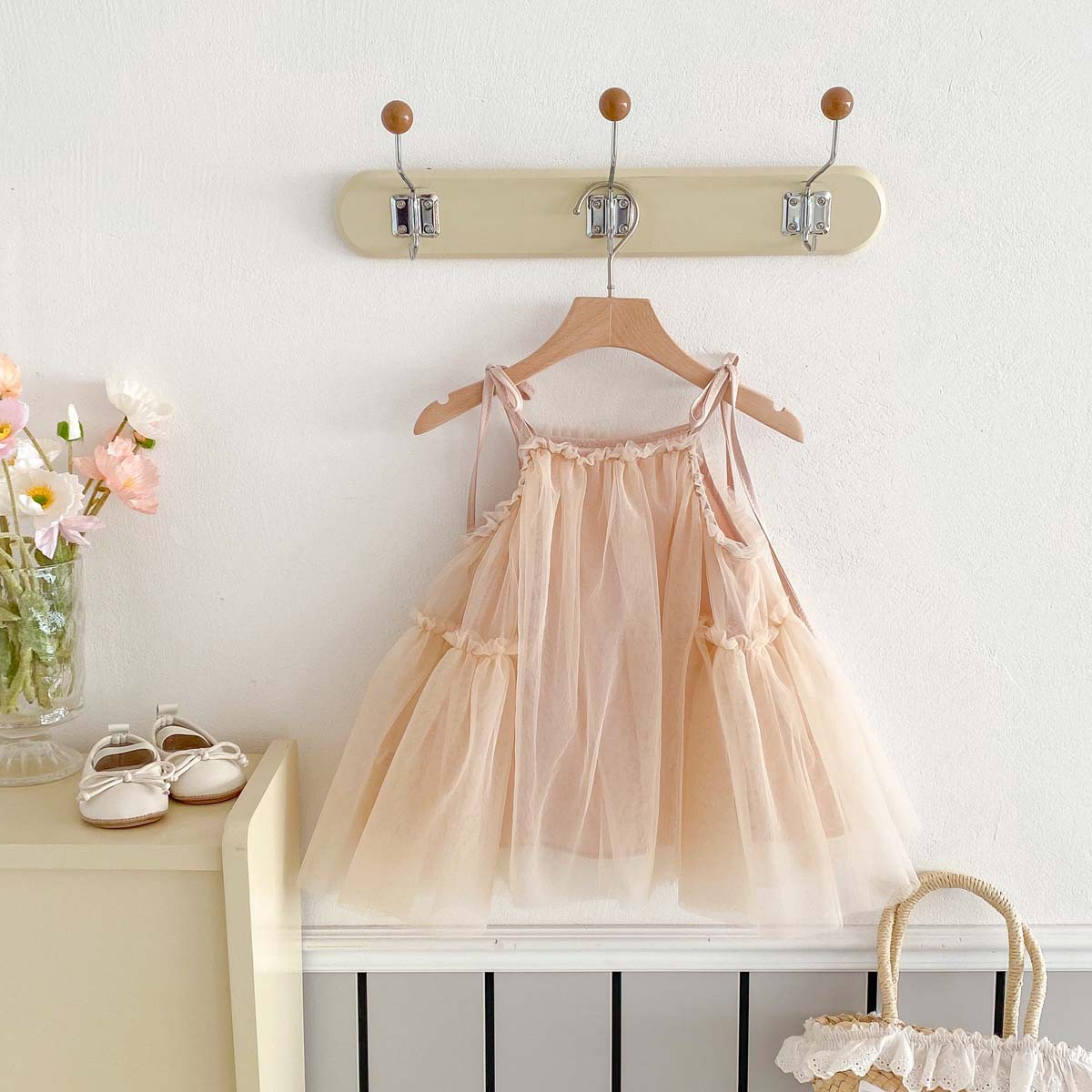 INS 한국 스타일 소녀 스트랩 메쉬 스커트 여름 새로운 아기 아기 달콤한 활 공주 원피스