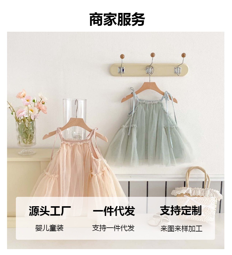 INS 한국 스타일 소녀 스트랩 메쉬 스커트 여름 새로운 아기 아기 달콤한 활 공주 원피스스토어 가기