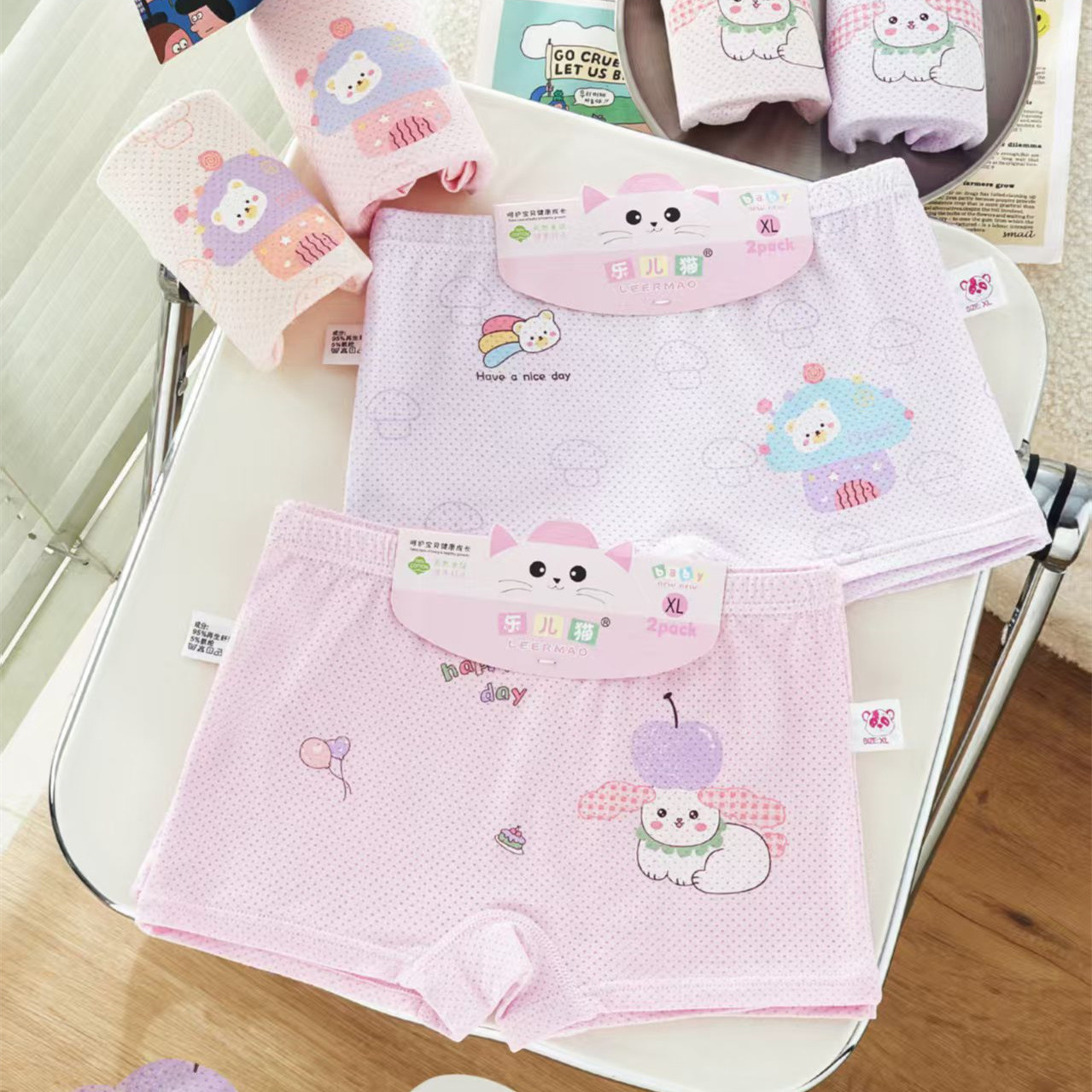 Leer 고양이 소녀 어린이 속옷 모달 통기성 피부 친화적 인 편안한 부드러운 만화 귀여운 인쇄 복서 바지스토어 가기