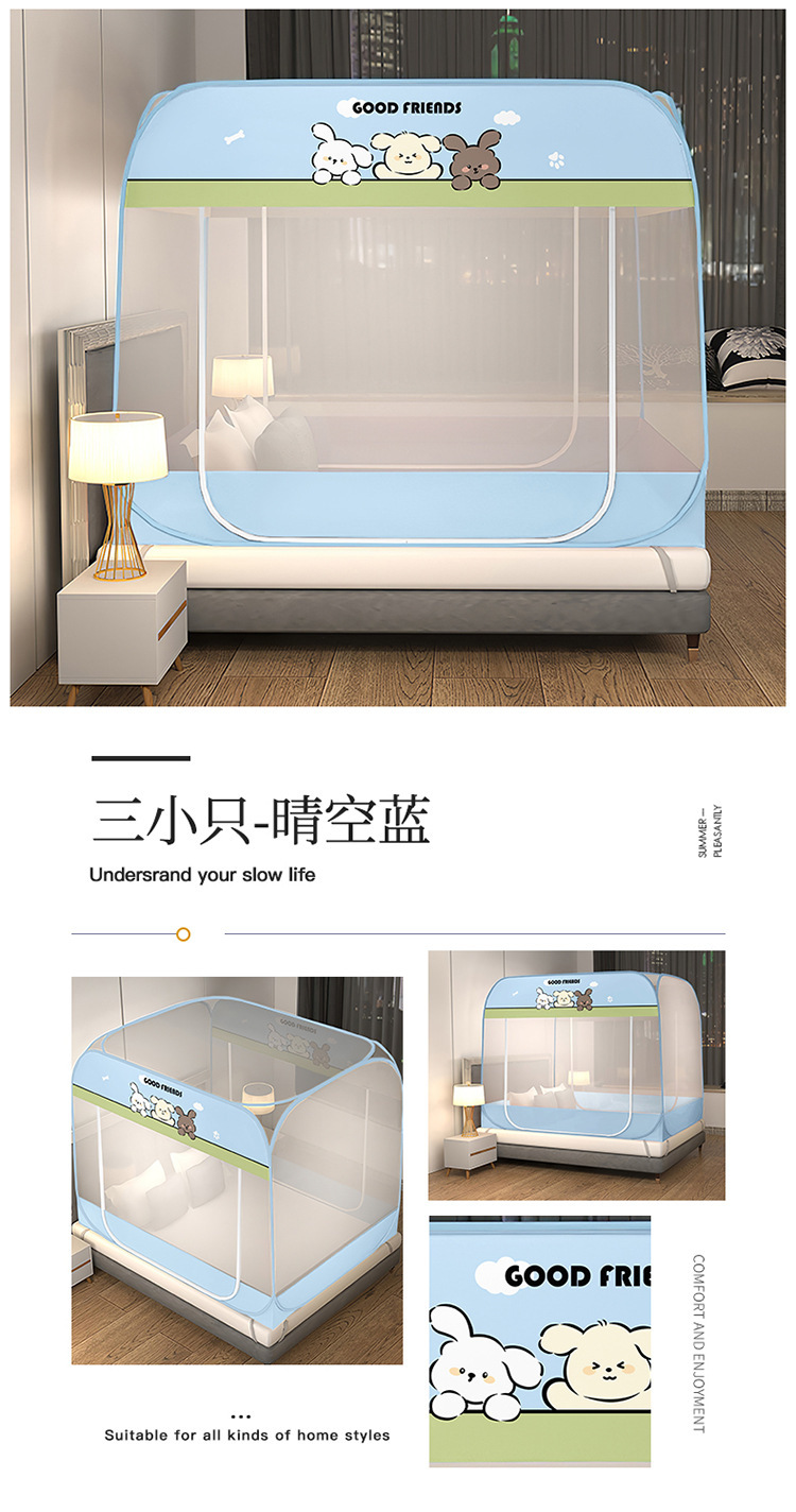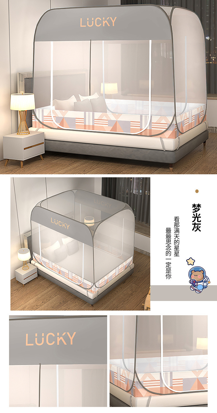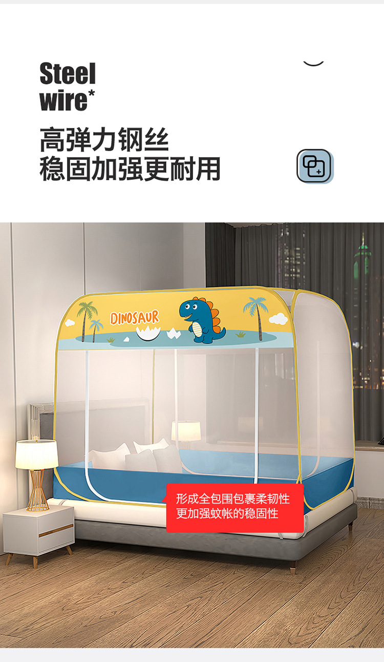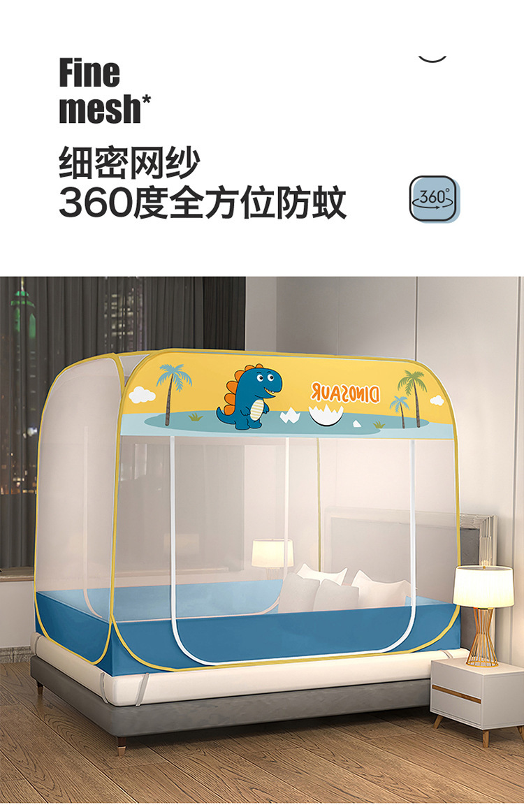 새로운 스타일의 관대 한 상단 유르트 모기장 설치-무료 인쇄 된 2 도어 전체 하단 드롭 방지 디자인은 팬을 걸 수 있습니다스토어 가기