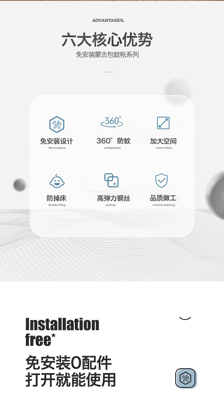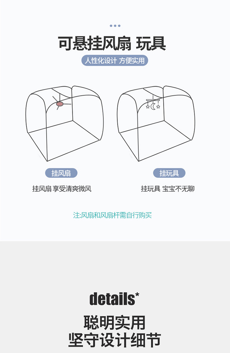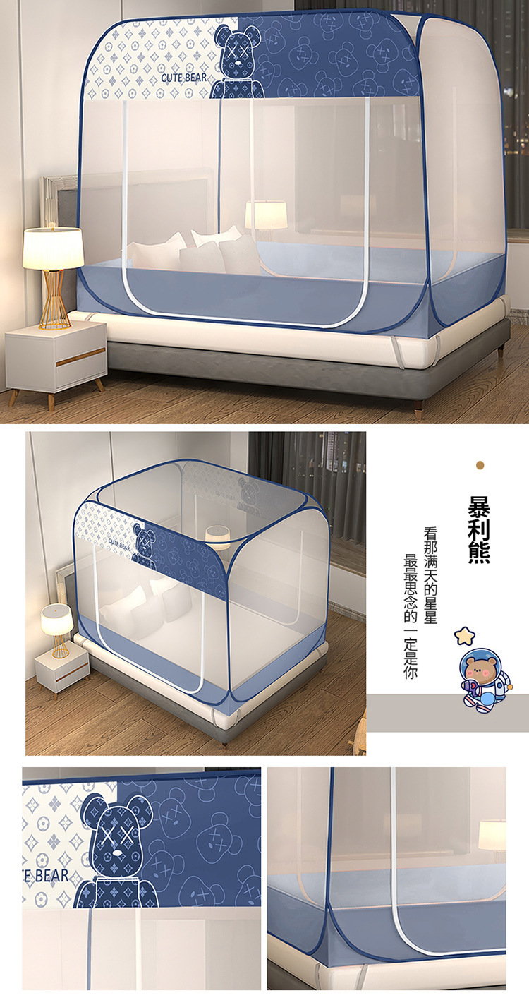 새로운 스타일의 관대 한 상단 유르트 모기장 설치-무료 인쇄 된 2 도어 전체 하단 드롭 방지 디자인은 팬을 걸 수 있습니다스토어 가기