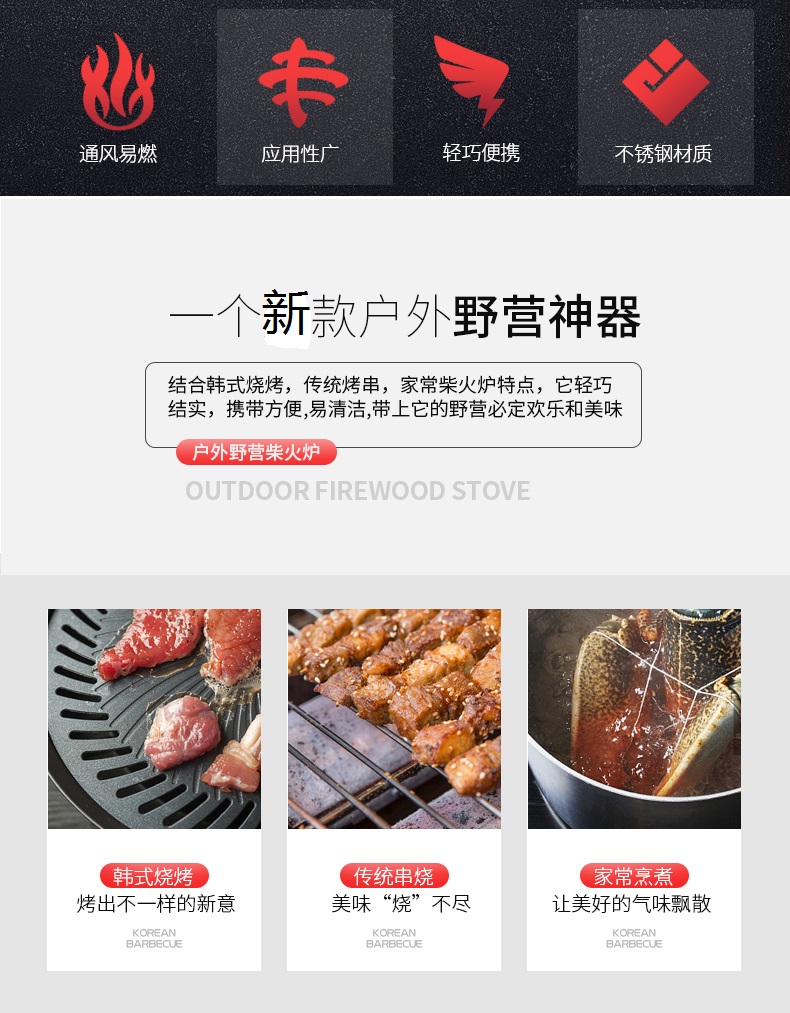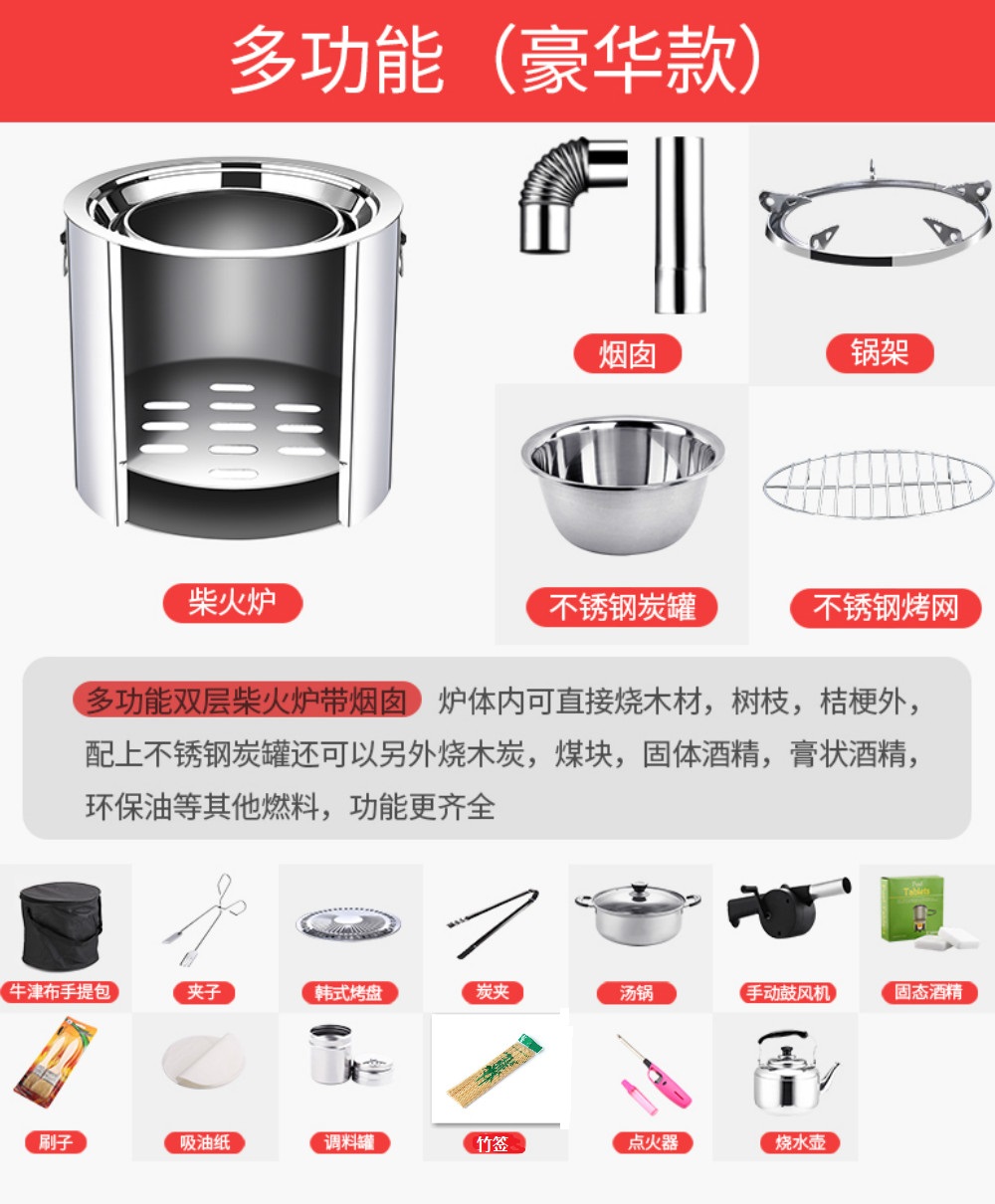 장작 난로 가정 농촌 새로운 야외 피크닉 스토브 장작 스토브 자체 운전 장작 스토브 휴대용 베이킹 화재 벨트 Xuanxu