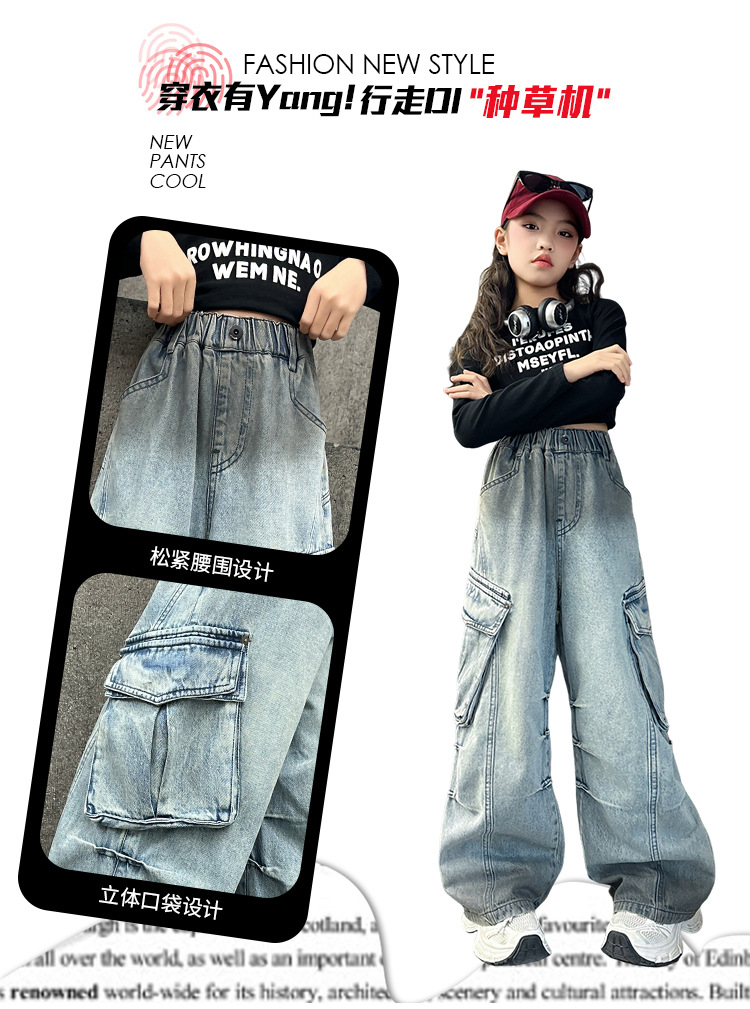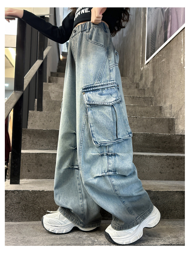 소녀 바지 봄과 가을 2025 새로운 어린이 청바지 서양식 큰 어린이 봄 착용 크레인 바지 소녀 캐주얼 바지