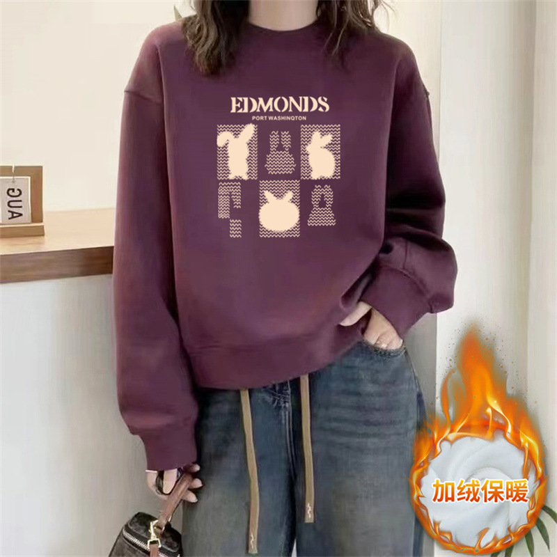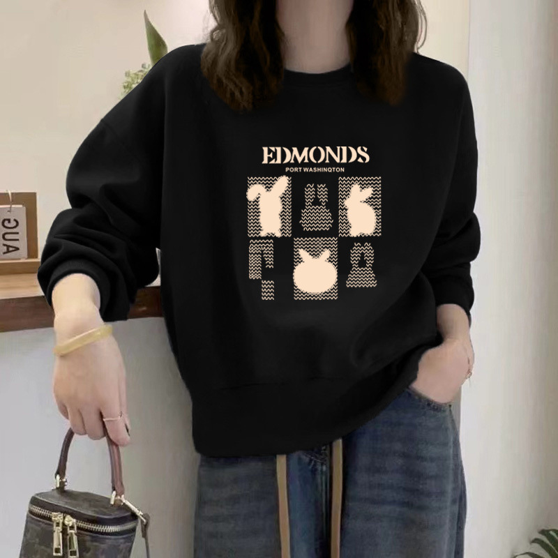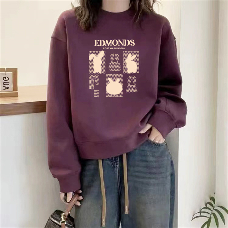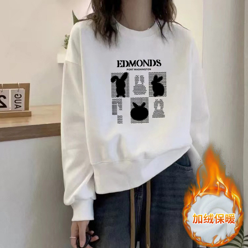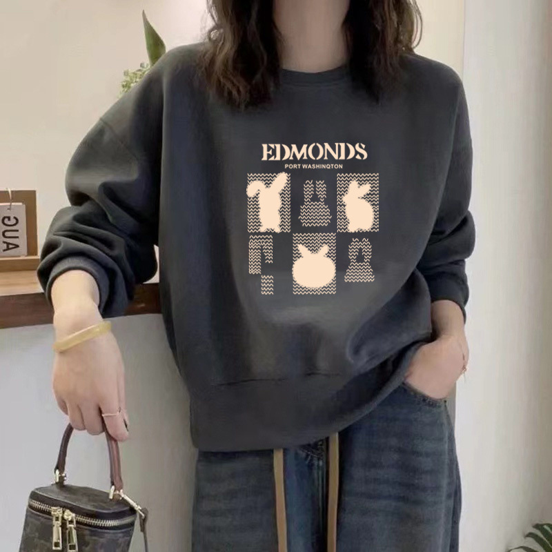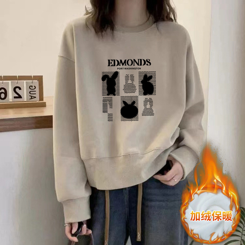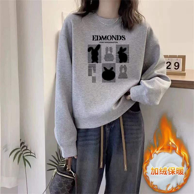 2024 가을과 겨울 새로운 라운드 넥 스웨트 셔츠 여성용 서양식 편지 인쇄 느슨한 풀오버 코튼 탑 캐주얼 재킷