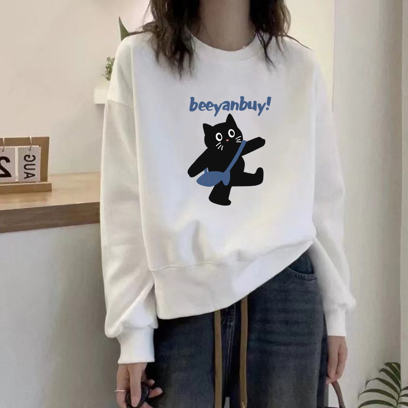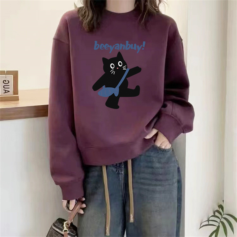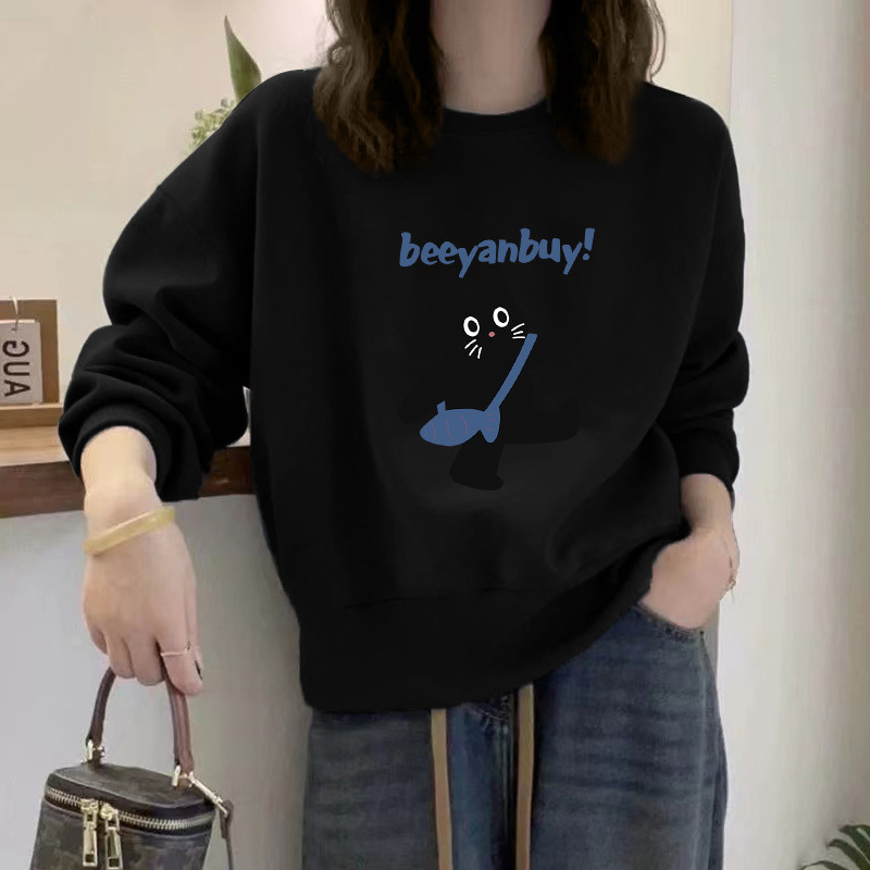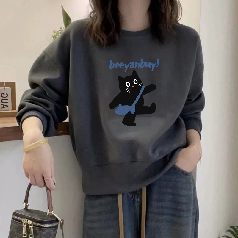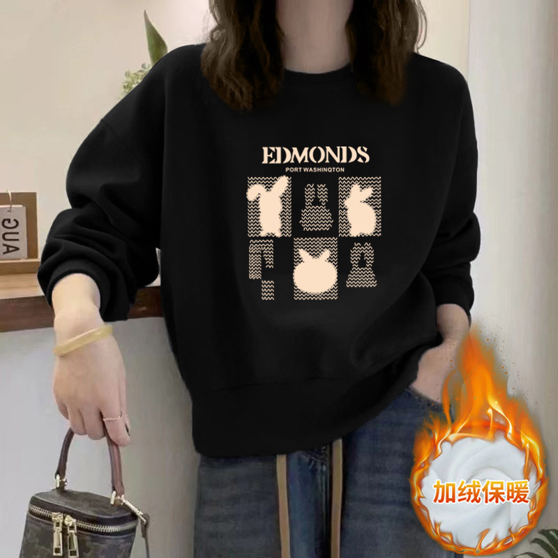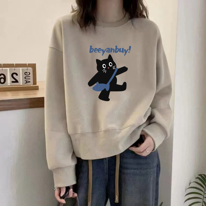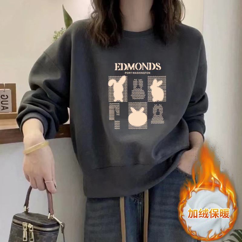 2024 가을과 겨울 새로운 라운드 넥 스웨트 셔츠 여성용 서양식 편지 인쇄 느슨한 풀오버 코튼 탑 캐주얼 재킷