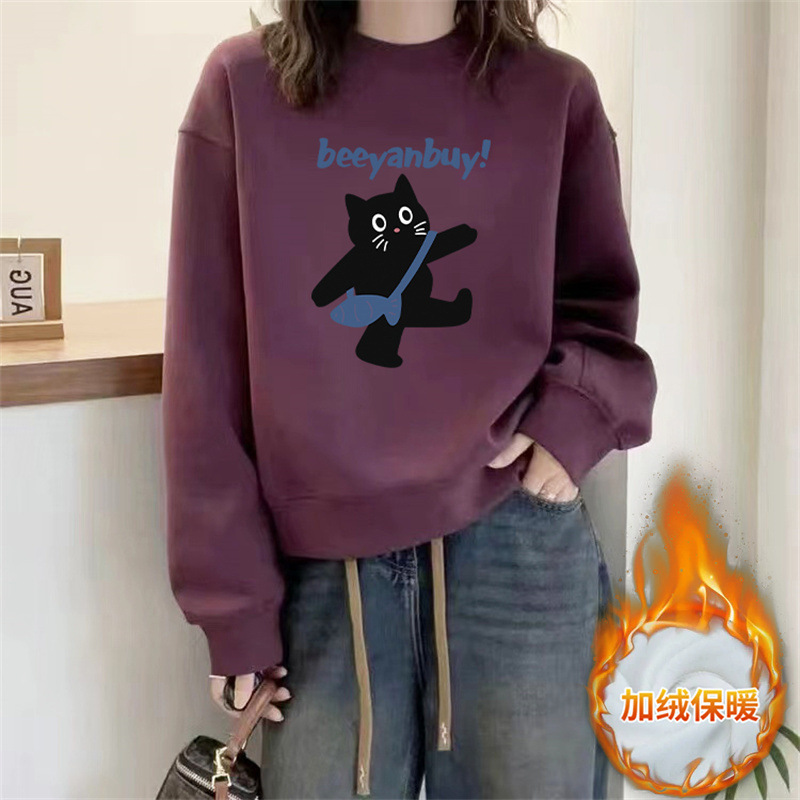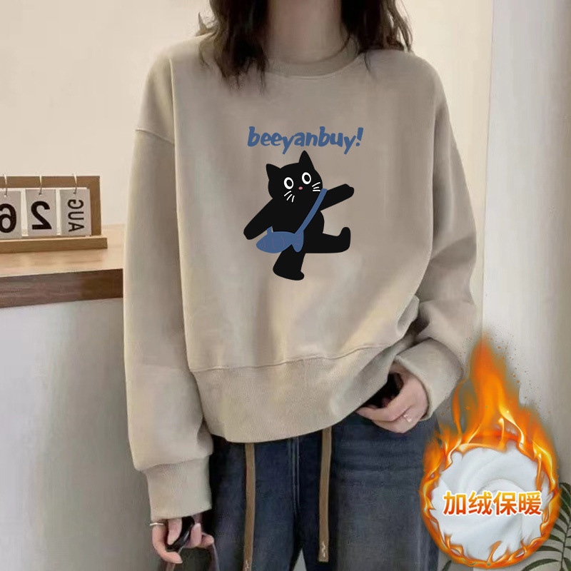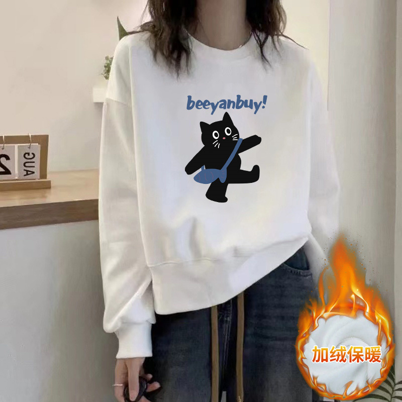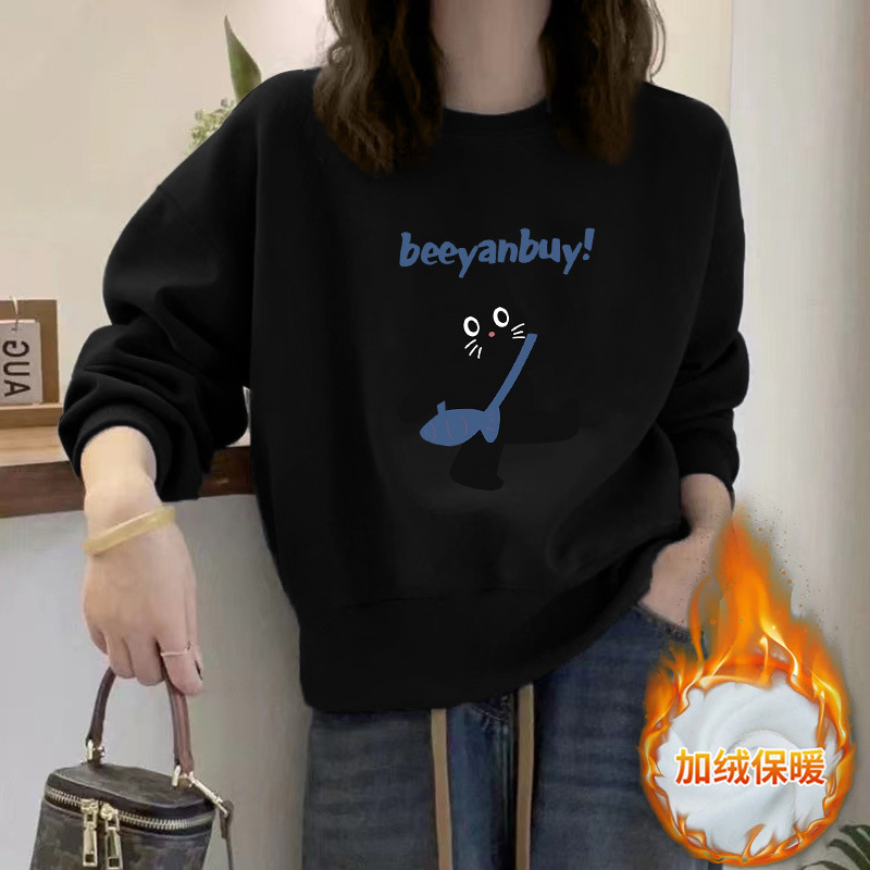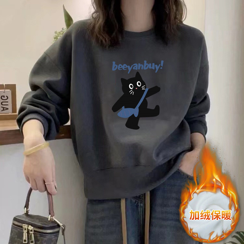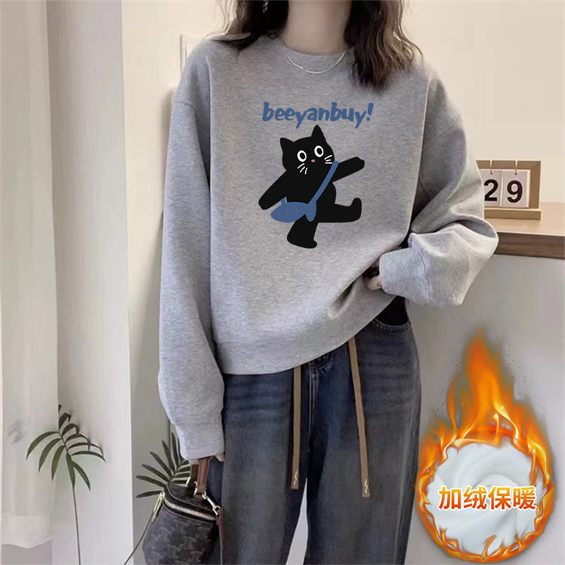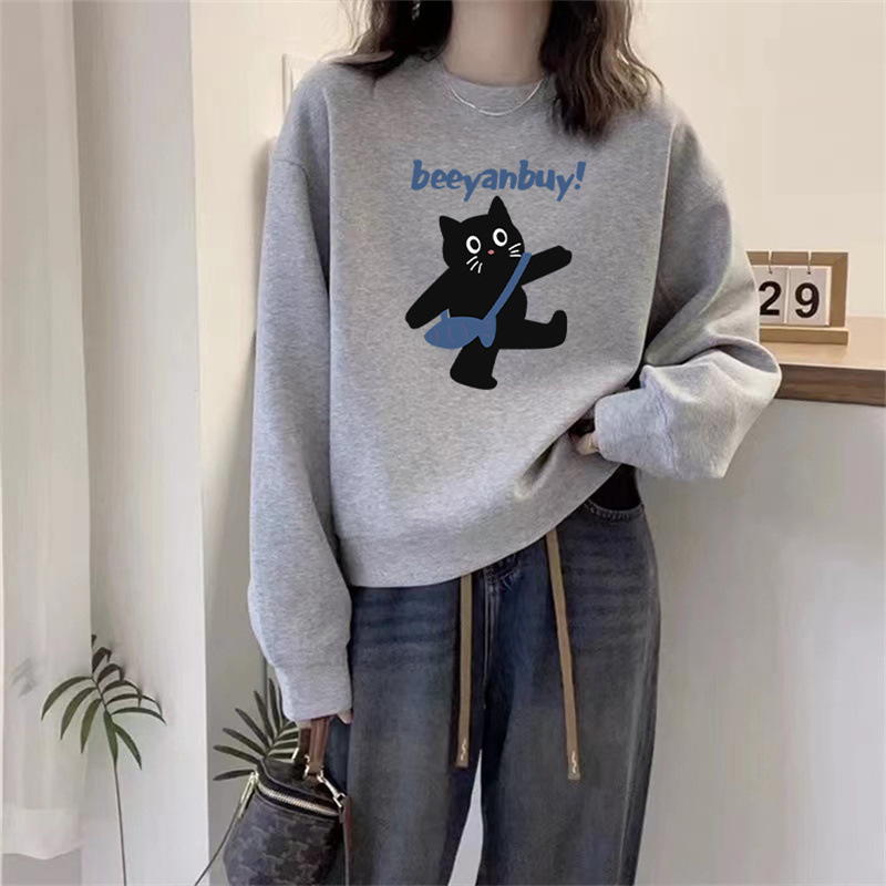 2024 가을과 겨울 새로운 라운드 넥 스웨트 셔츠 여성용 서양식 편지 인쇄 느슨한 풀오버 코튼 탑 캐주얼 재킷