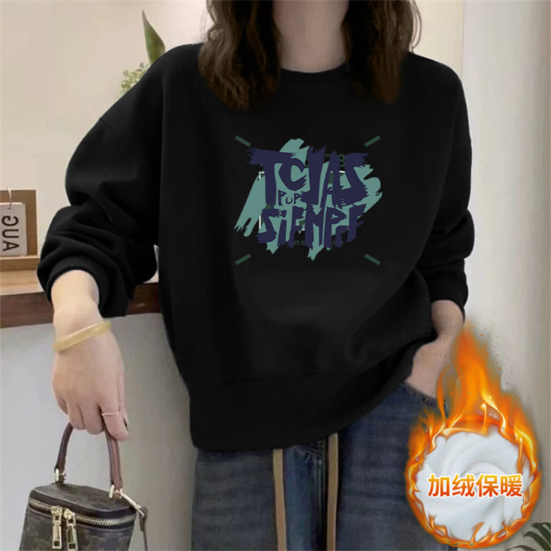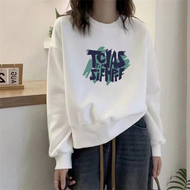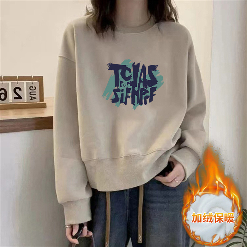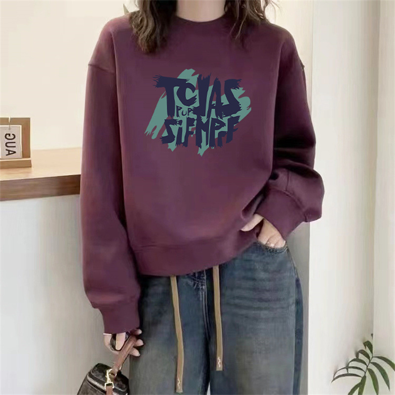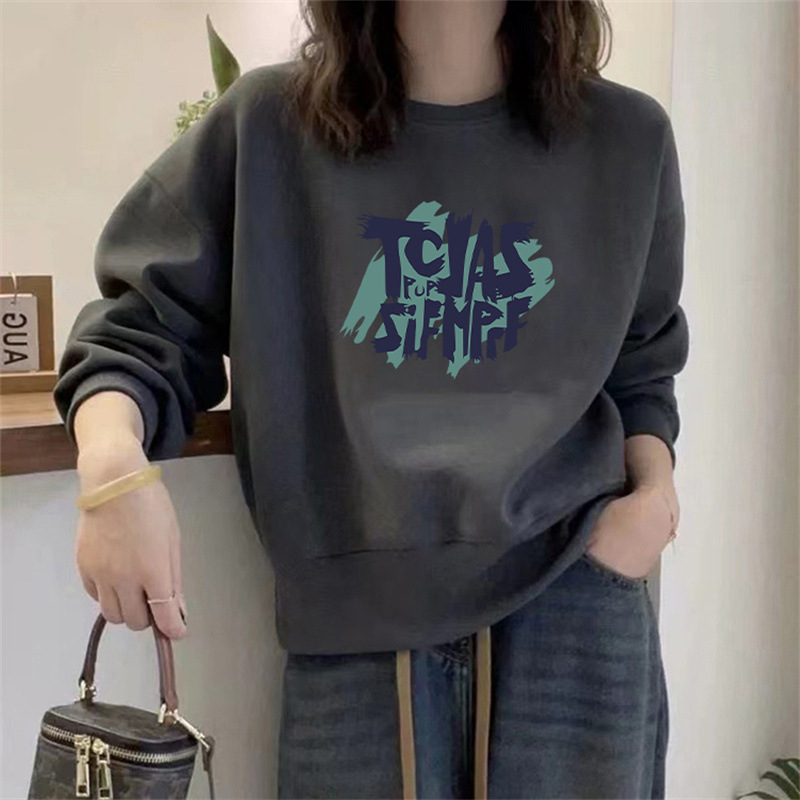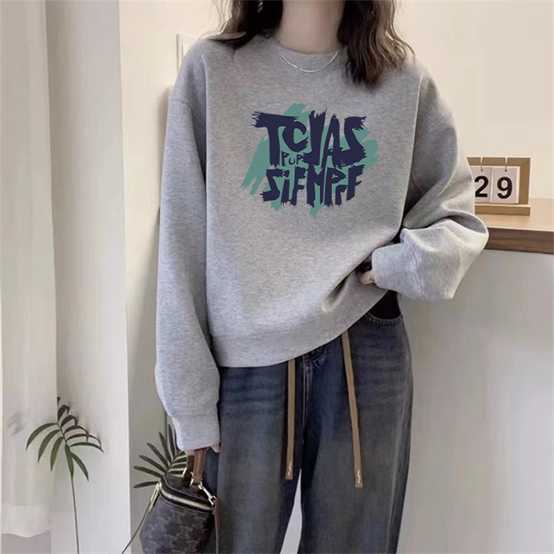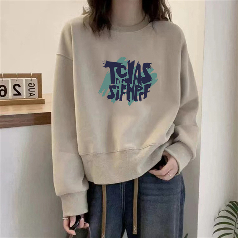 2024 가을과 겨울 새로운 라운드 넥 스웨트 셔츠 여성용 서양식 편지 인쇄 느슨한 풀오버 코튼 탑 캐주얼 재킷스토어 가기