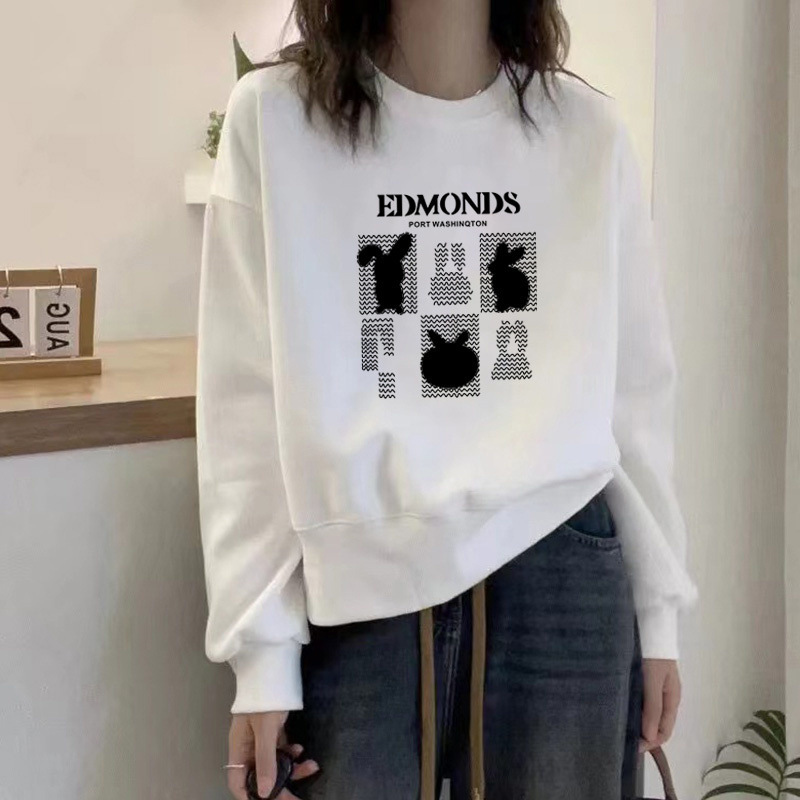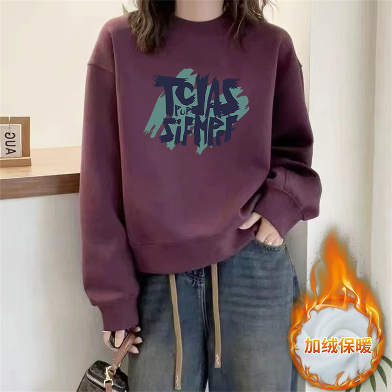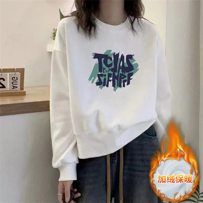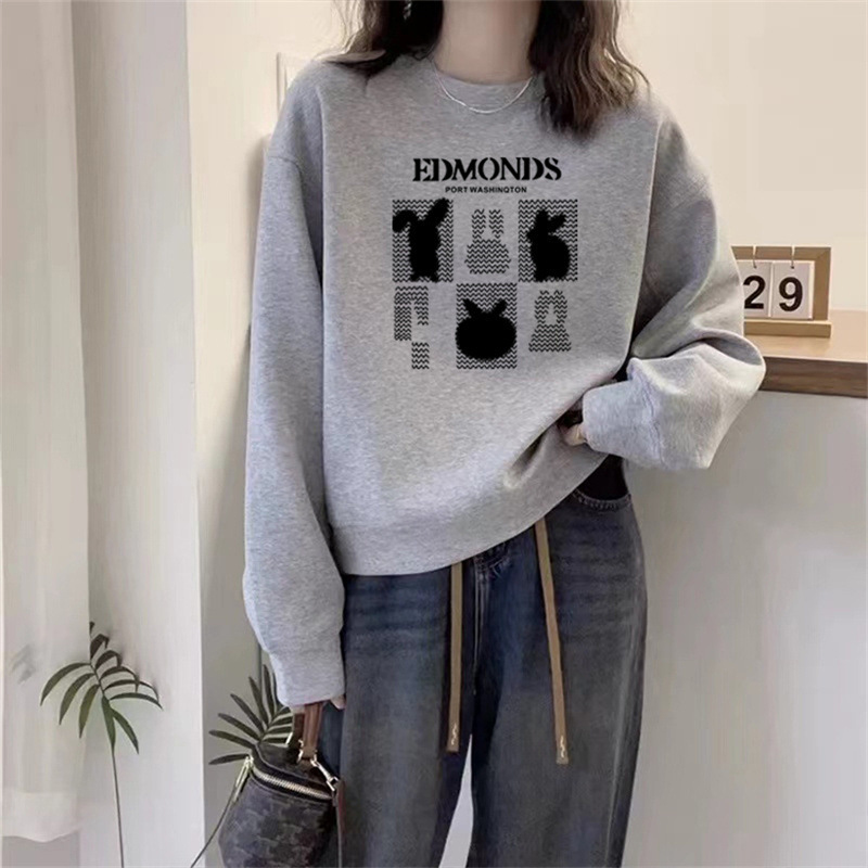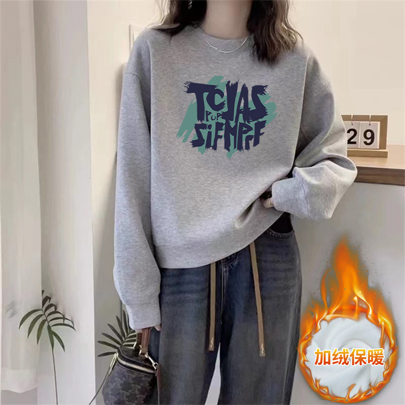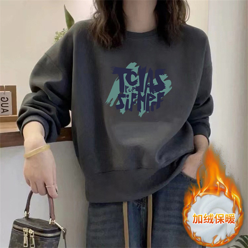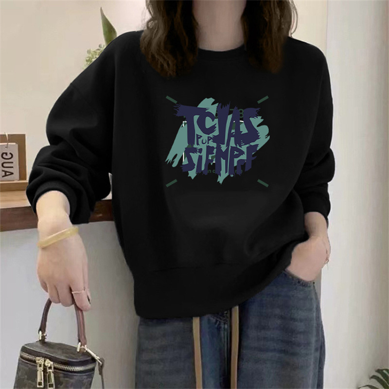 2024 가을과 겨울 새로운 라운드 넥 스웨트 셔츠 여성용 서양식 편지 인쇄 느슨한 풀오버 코튼 탑 캐주얼 재킷스토어 가기