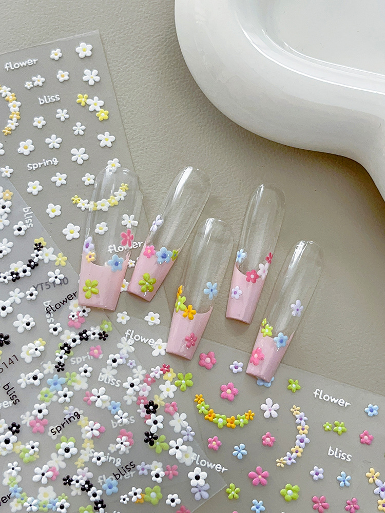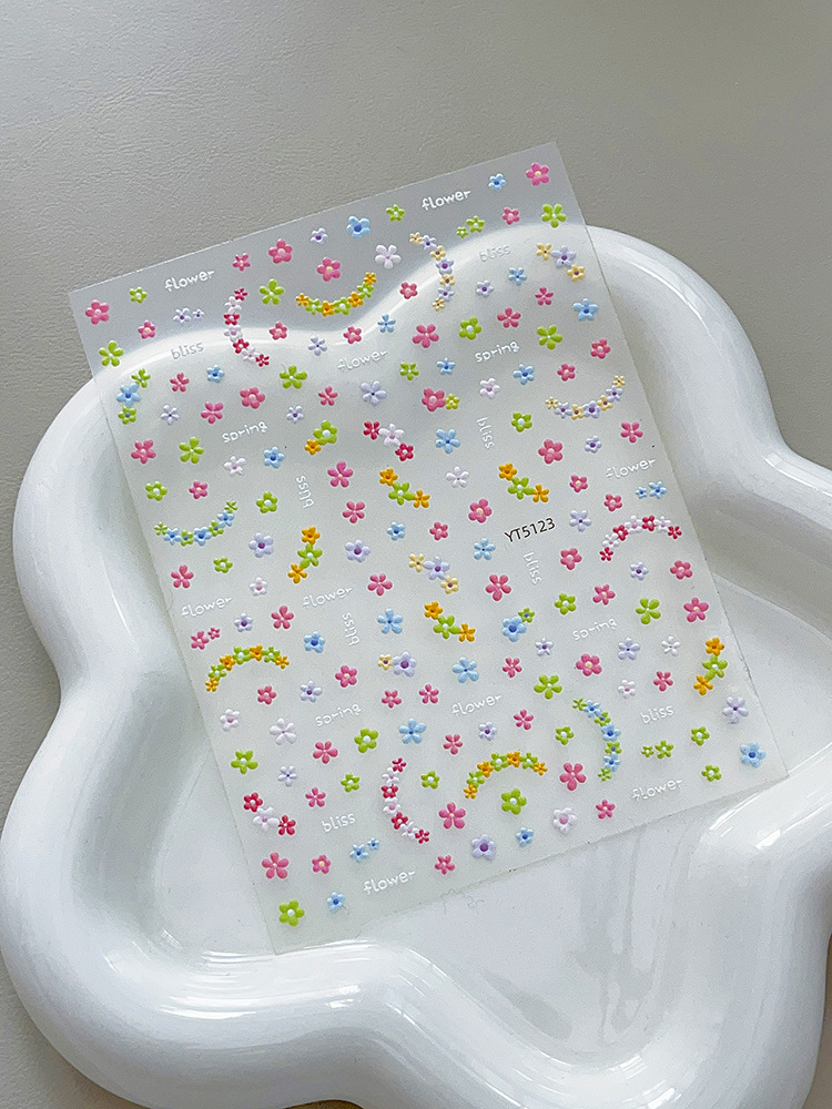 YITU 개미 그림 양각 꽃 네일 아트 스티커 영어 다채로운 작은 신선한 인터넷 연예인 인기 장식 스티커 YT5123