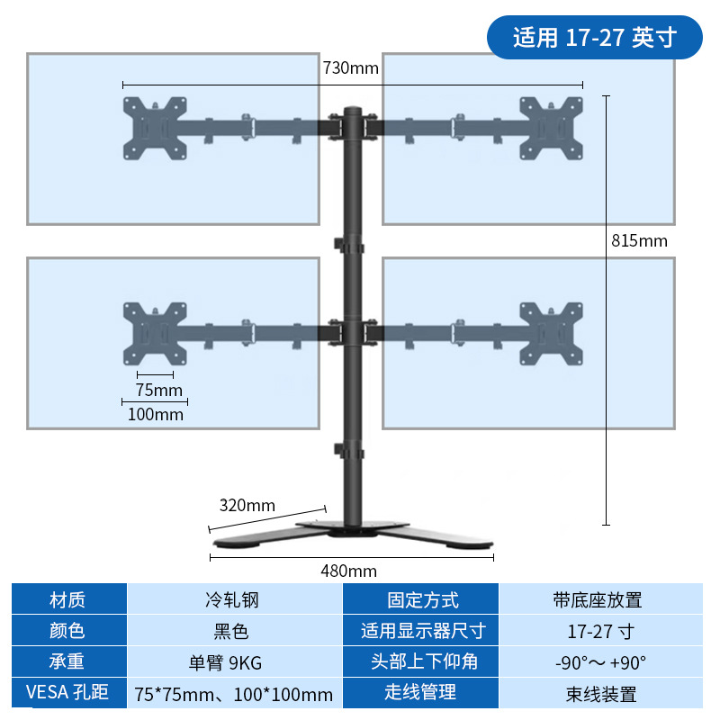 • T044 4화면 모니터 스탠드( 17-27inch ) 기본 모델
