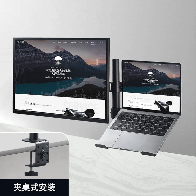 • T012 컴퓨터 + 노트북 좌우 듀얼 스크린 스탠드 - 길고 짧은 팔 모델( 17-27inch ) 기본 모델
