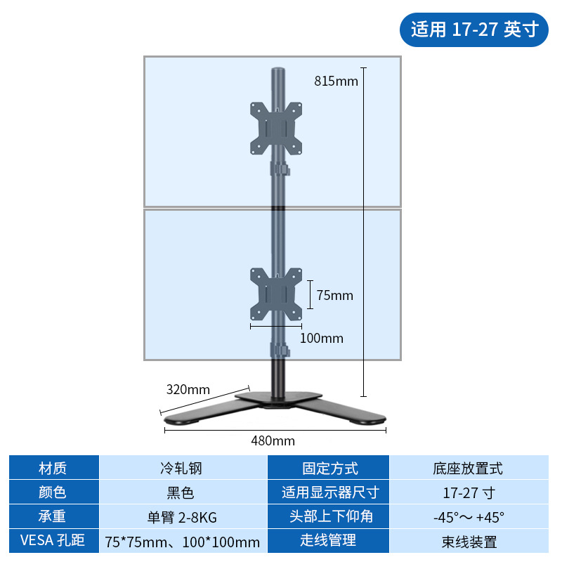 • T002 상하 듀얼 스크린 모니터 스탠드( 17-27inch ) 기본 모델
