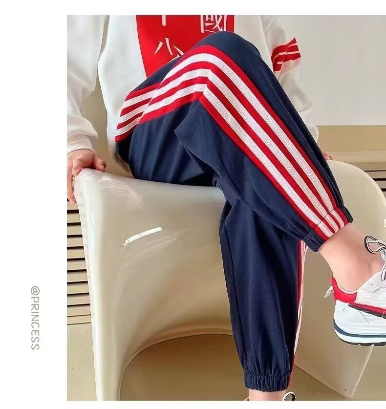 새로운 여자 바지 봄과 가을 2025 새로운 어린이 학생 소녀 스포츠 바지 올 매치 스웨트 바지 캐주얼 바지