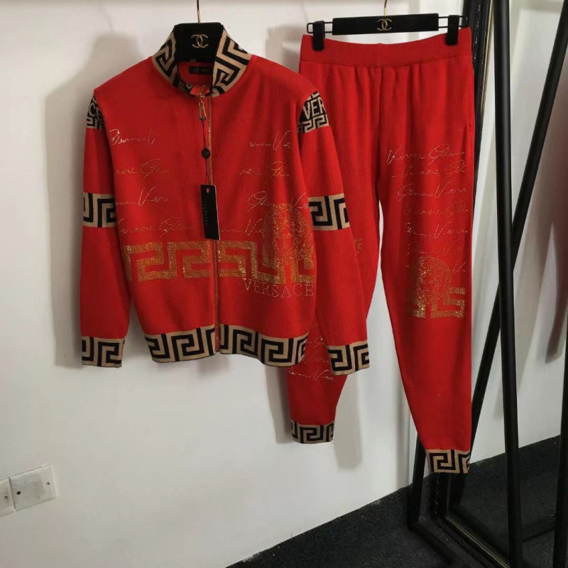 新款套装开衫女装时尚针织两件套重工烫钻美人像迷宫图案联名套装