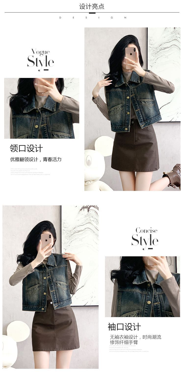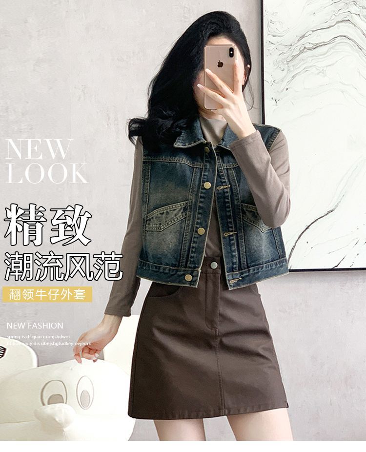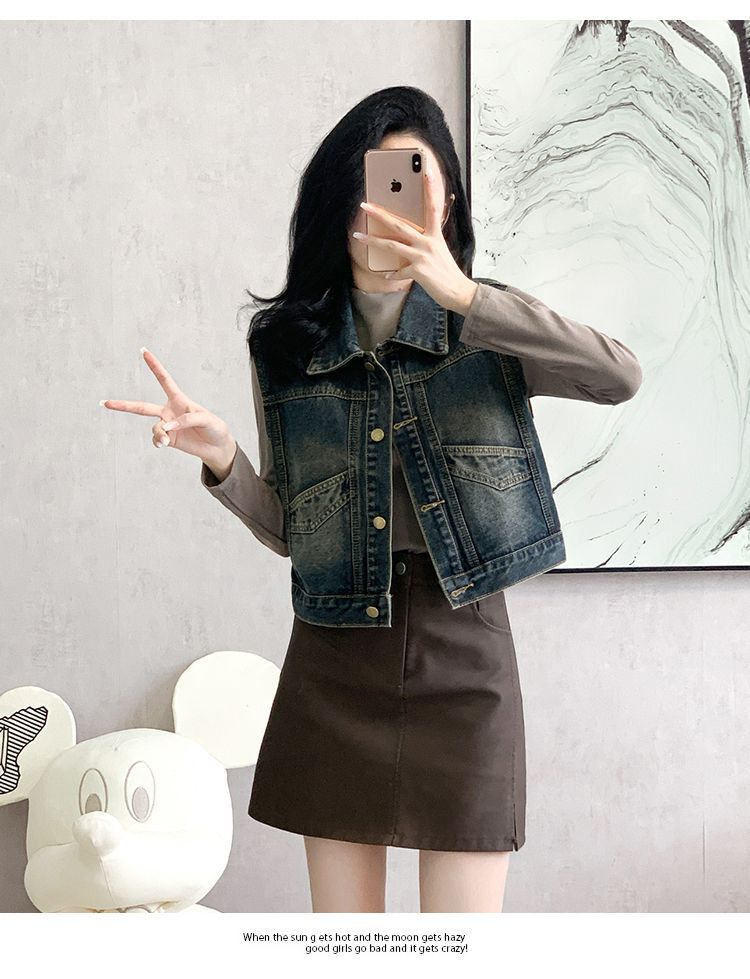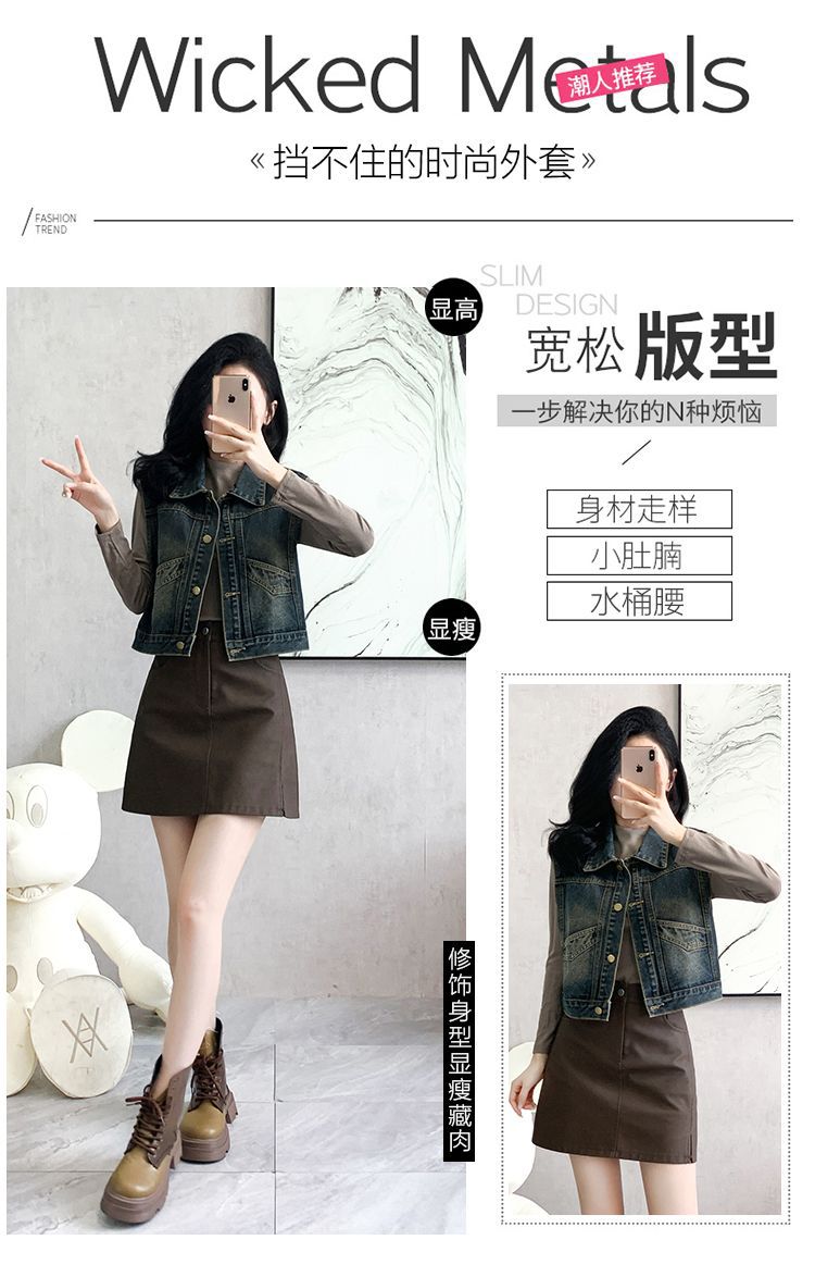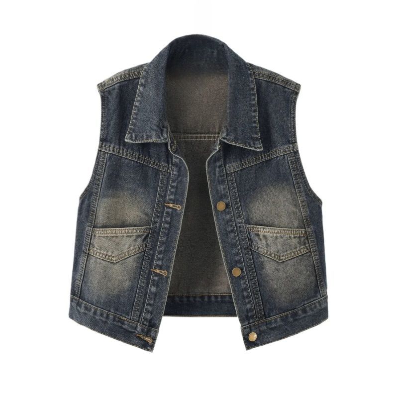 빈티지 데님 조끼 여성의 2024 가을 새로운 캐주얼 높은 허리 슬리밍 재킷 오래 된 세탁 가능한 재킷