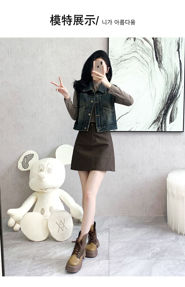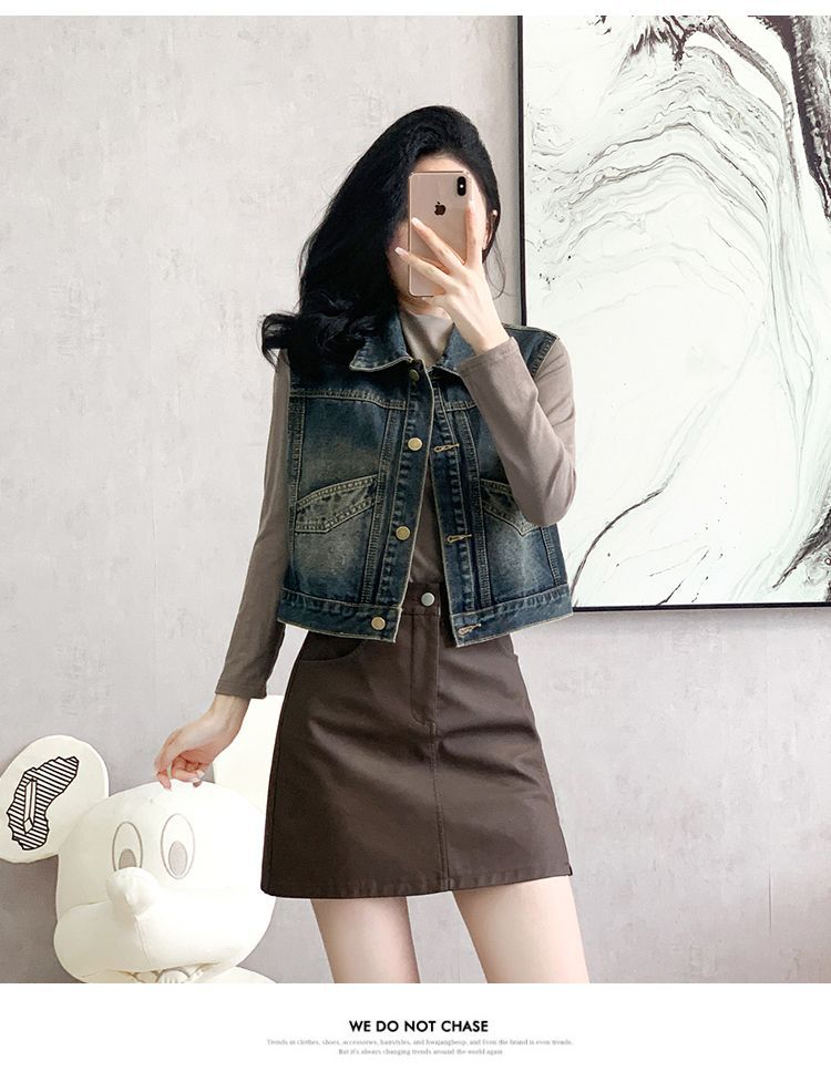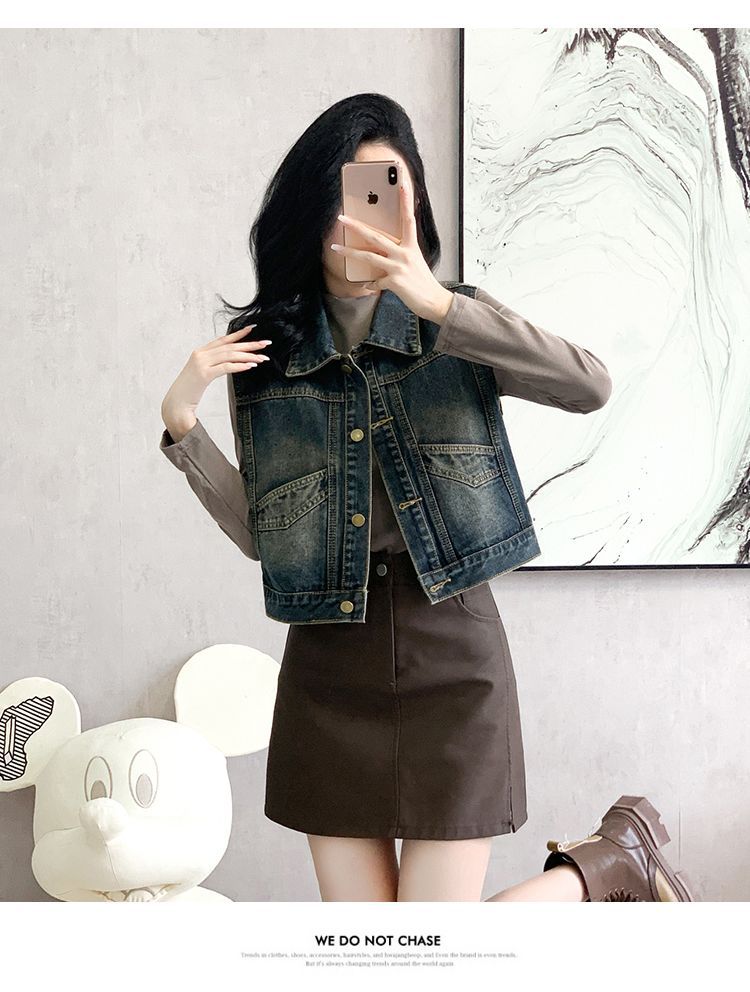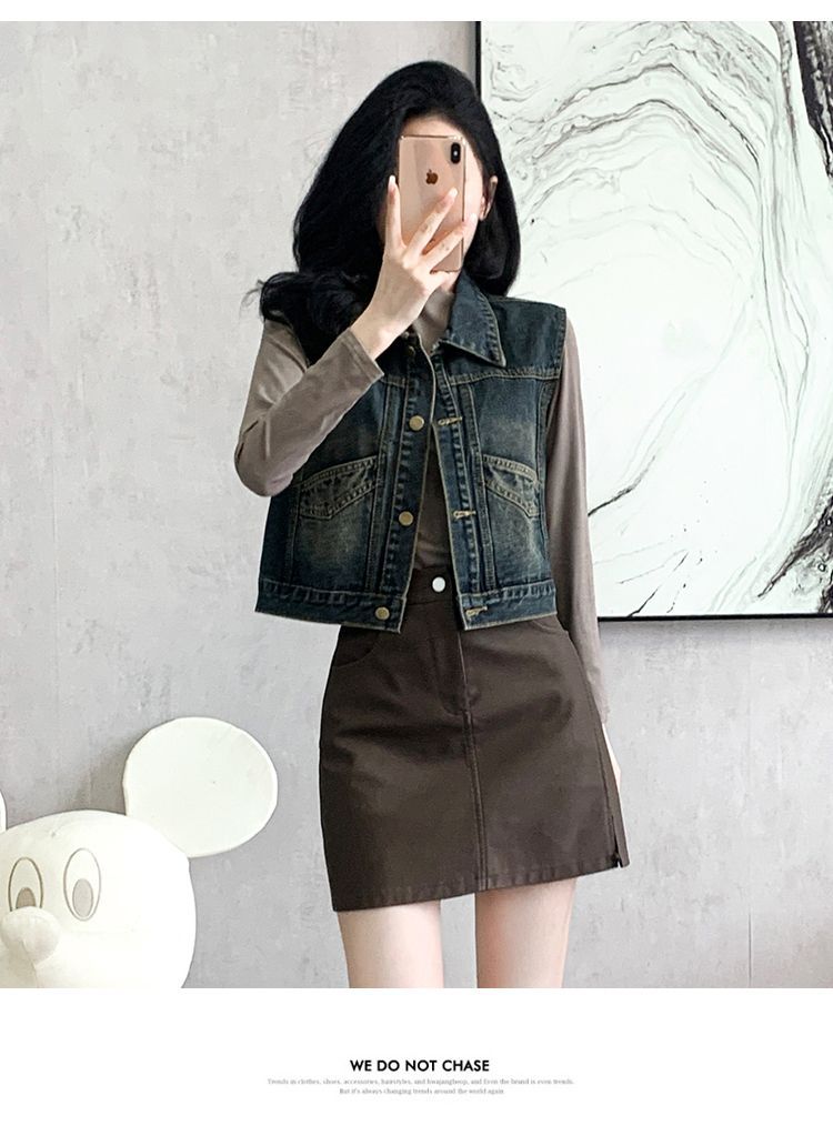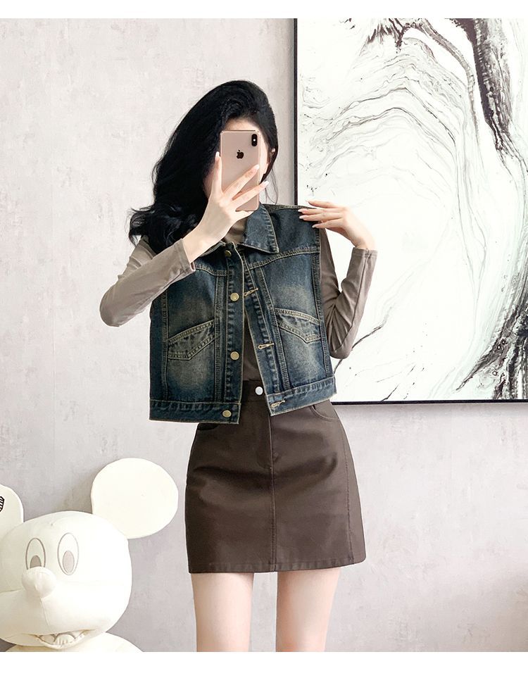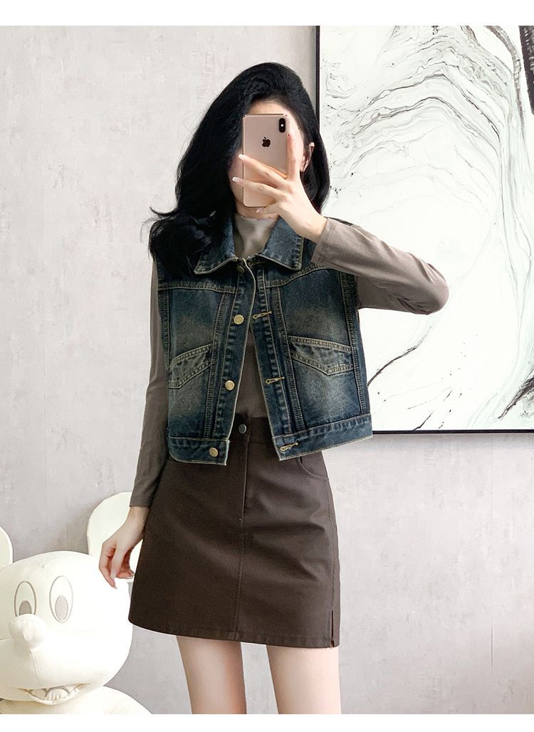 빈티지 데님 조끼 여성의 2024 가을 새로운 캐주얼 높은 허리 슬리밍 재킷 오래 된 세탁 가능한 재킷