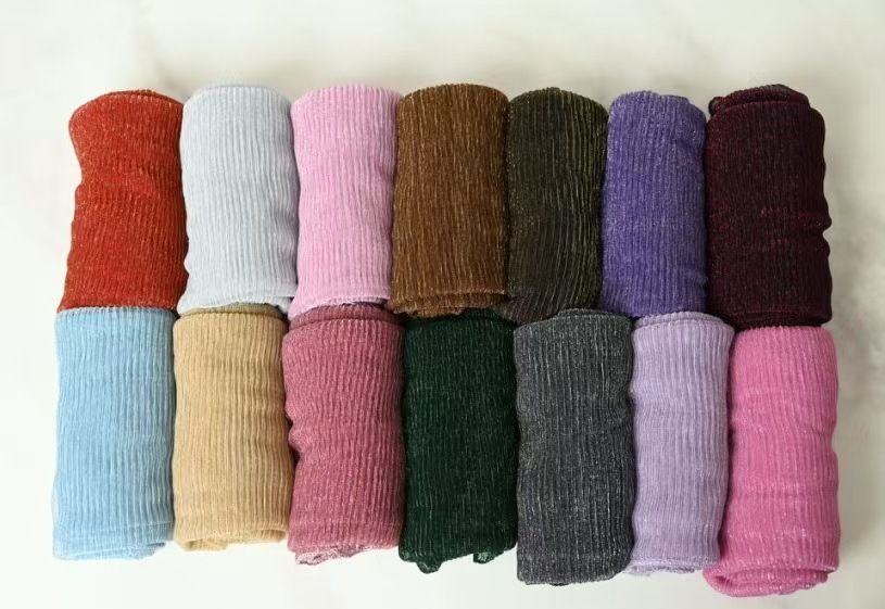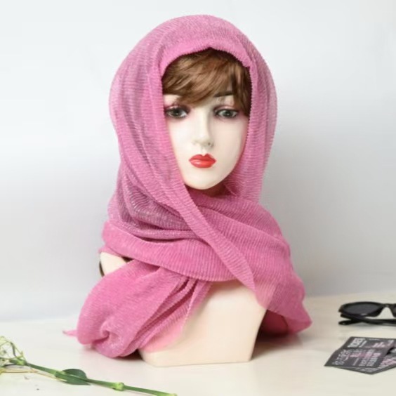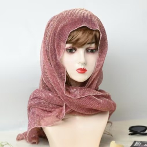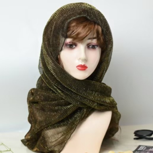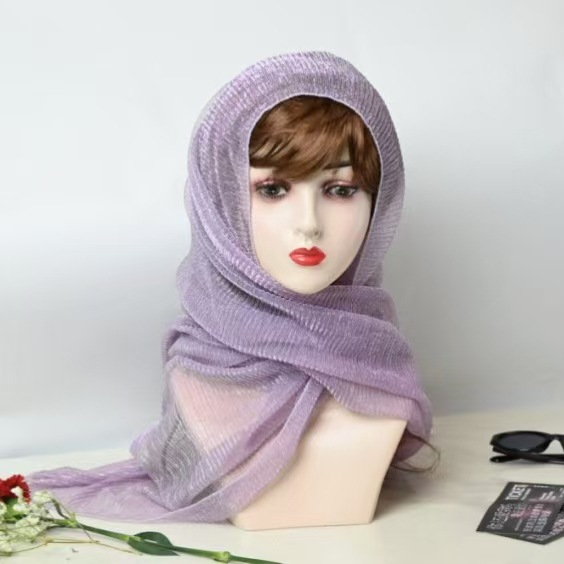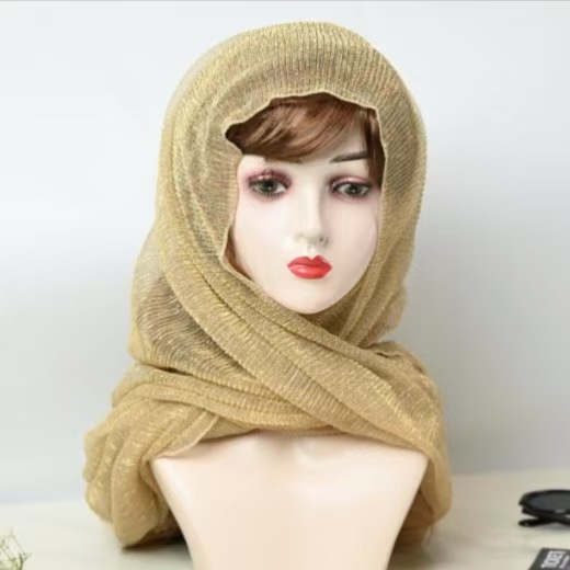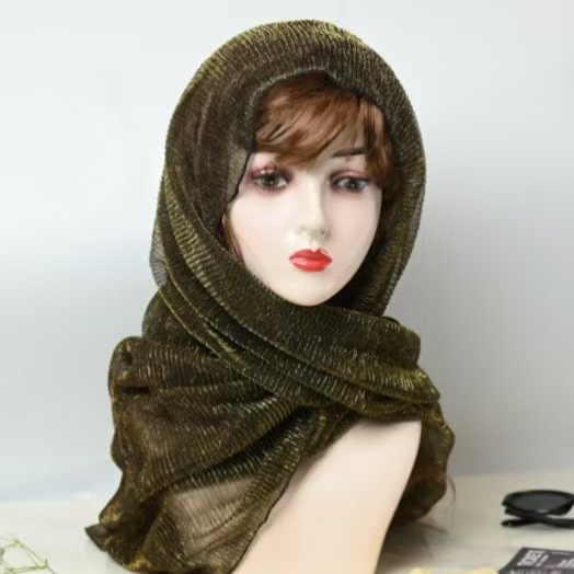 새로운 주름 여행 Baotou 밝은 실크 스카프 패션 조커 단색 스카프 골드 및 실버 실크 헤드 스카프 목도리 도매 여성