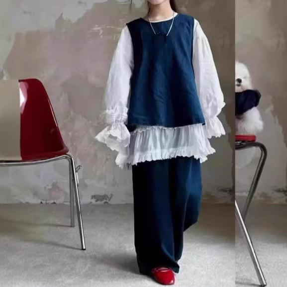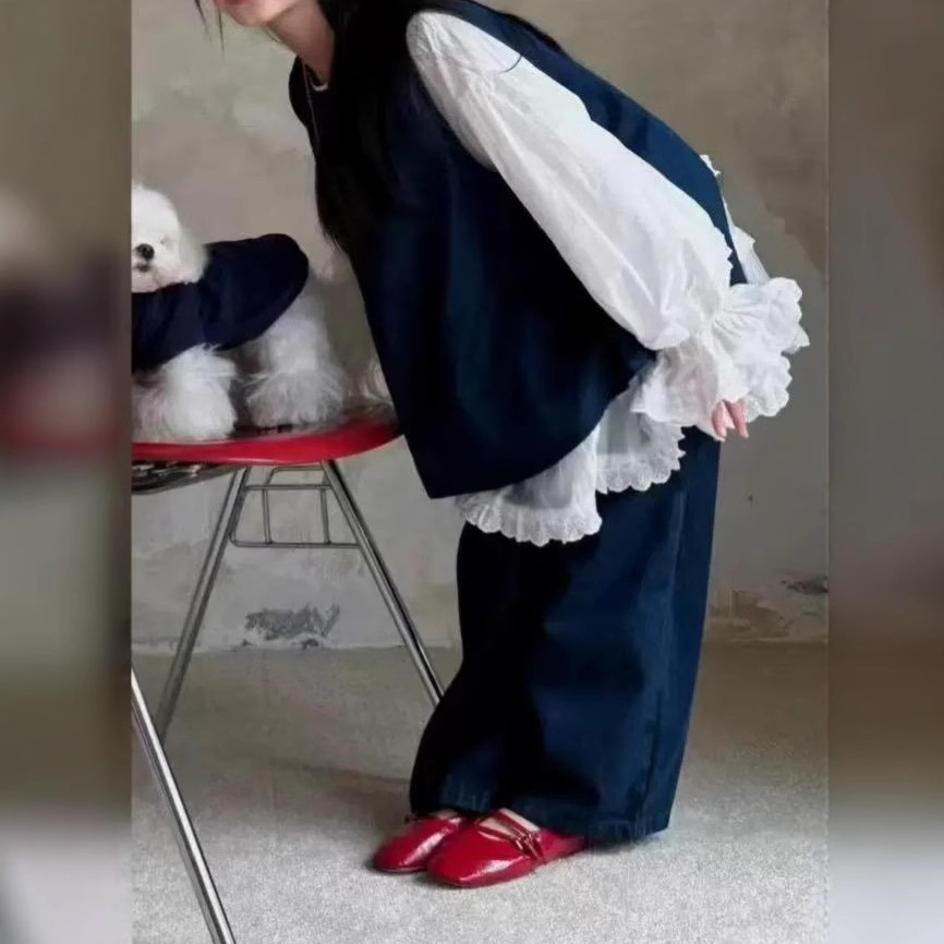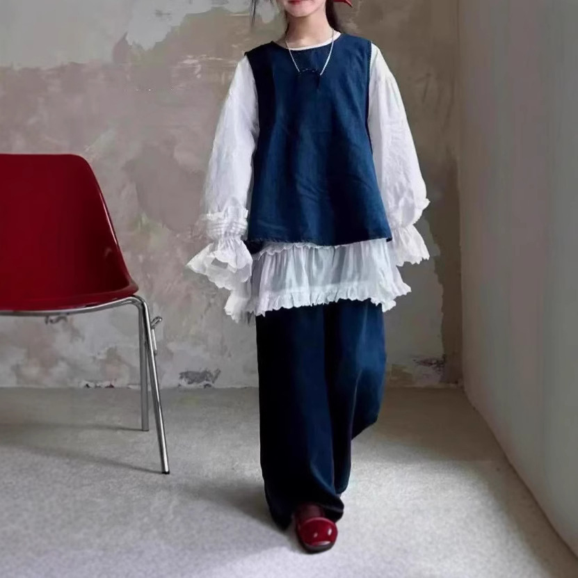 소녀의 봄 세트 2025 새로운 어린이 데님 조끼 3 피스 한국식 하이 레벨 입고 서양식 봄 원피스