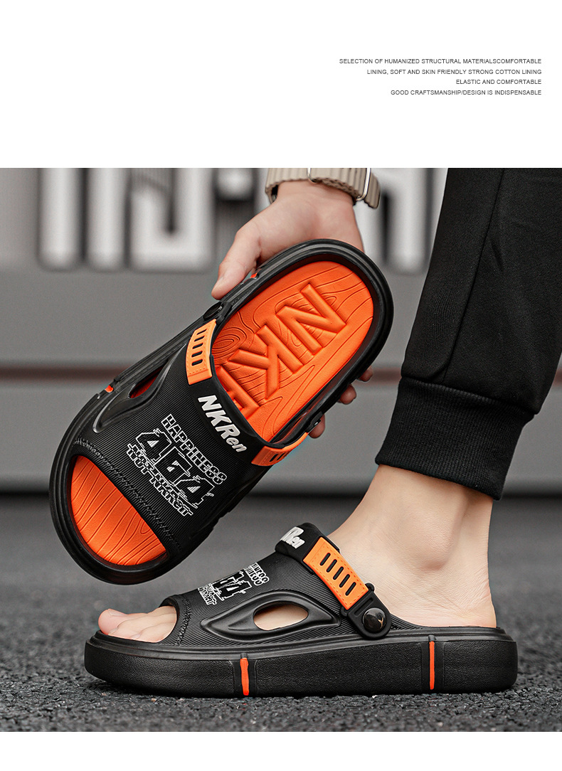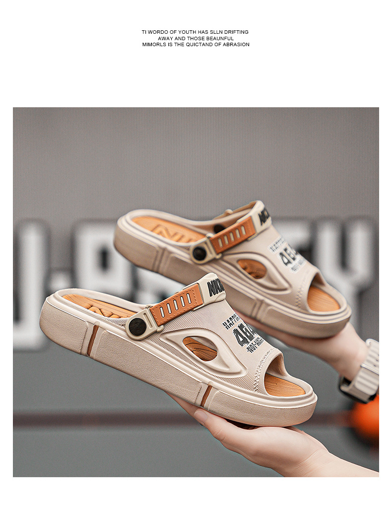 2 색 슬리퍼 남성 여름 겉옷 트래핑 듀얼 사용 슬라이드 야외 미끄럼 방지 캐주얼 비치 샌들
