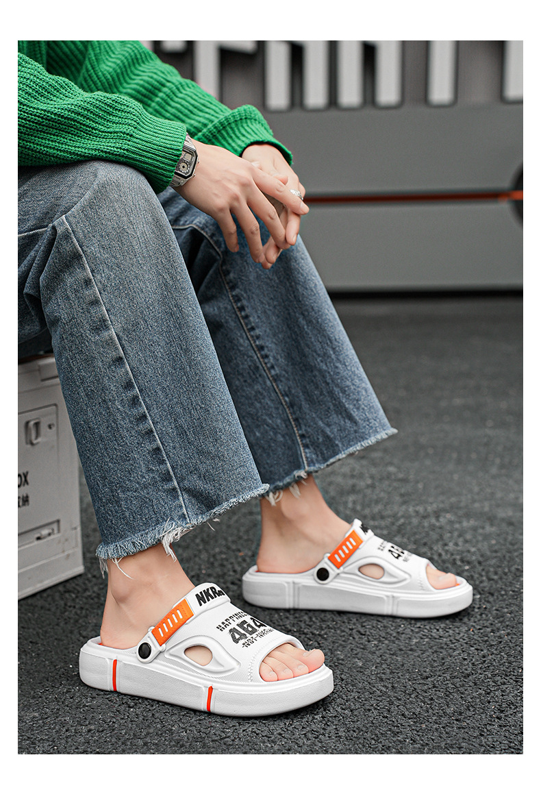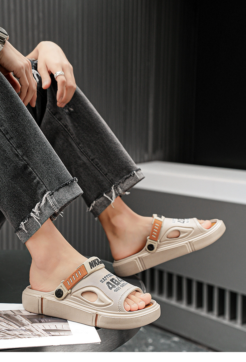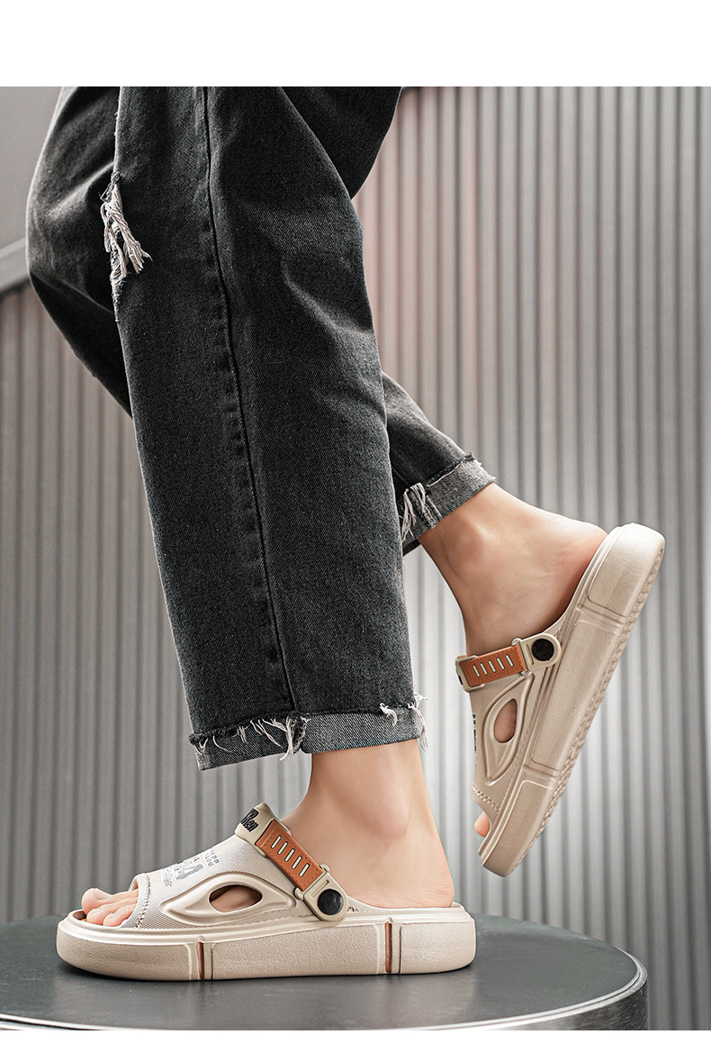 2 색 슬리퍼 남성 여름 겉옷 트래핑 듀얼 사용 슬라이드 야외 미끄럼 방지 캐주얼 비치 샌들스토어 가기