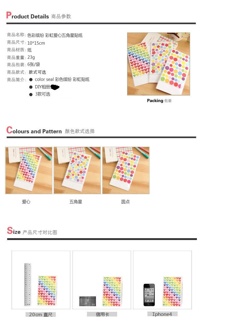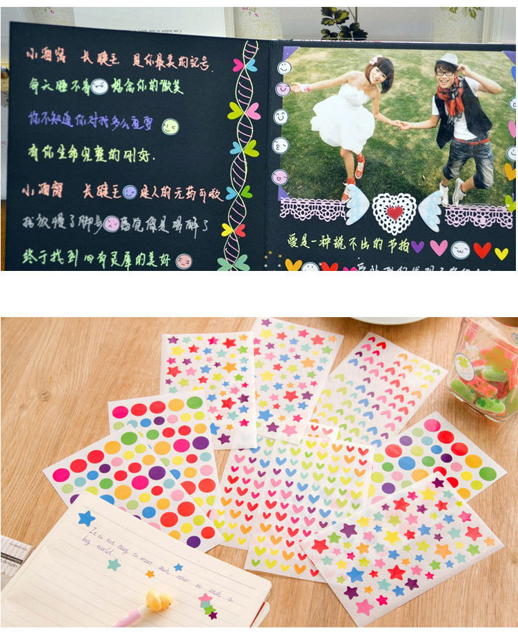 도매 귀여운 스티커 귀여운 다채로운 폴카 도트 사랑 다섯개 별 사진 앨범 장식 손 계정 스티커 6