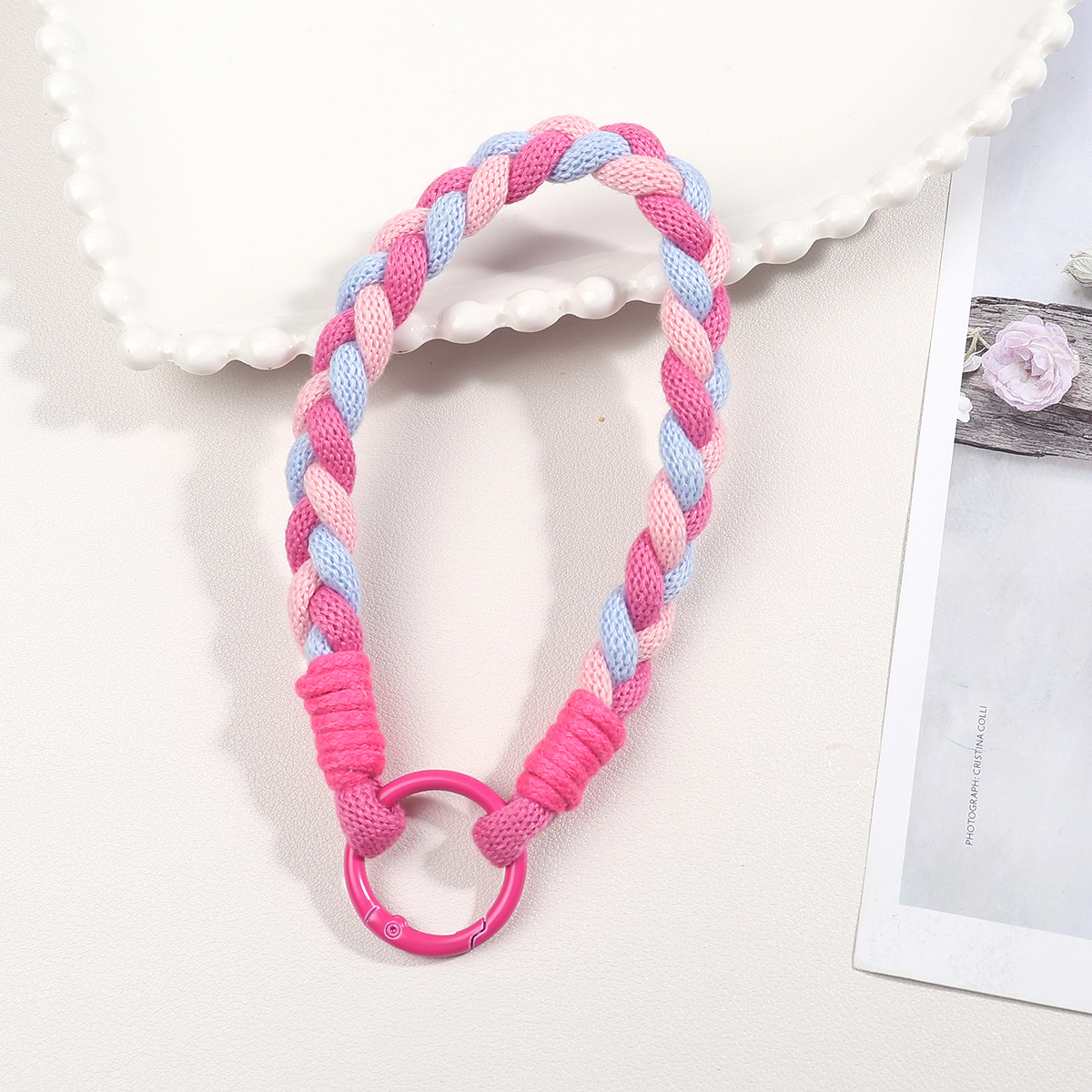 새로운 화장품 가방 끈 컬러 꼰 꼰 짧은 손 체인 가방 지퍼 장식 휴대 전화 펜던트